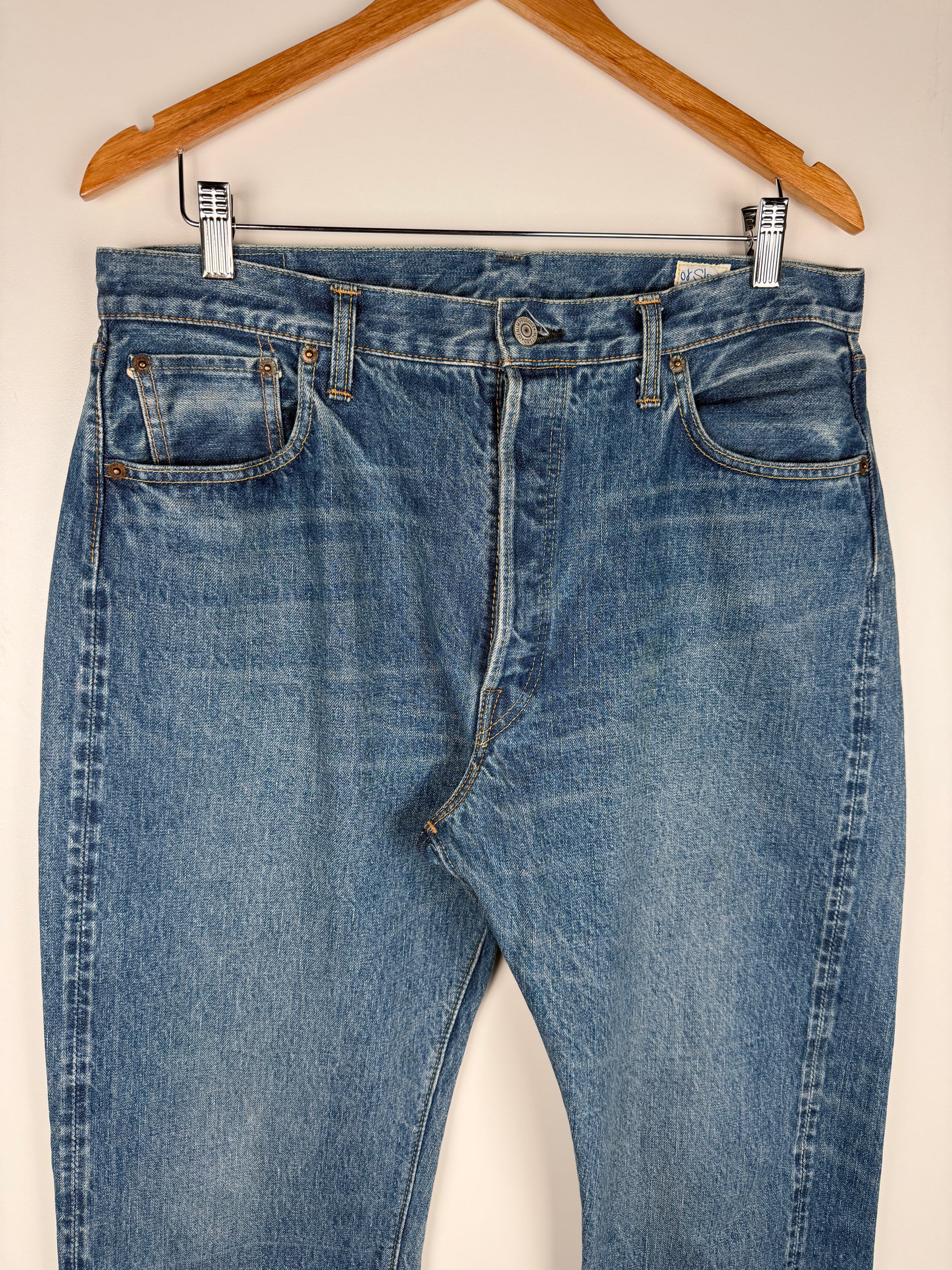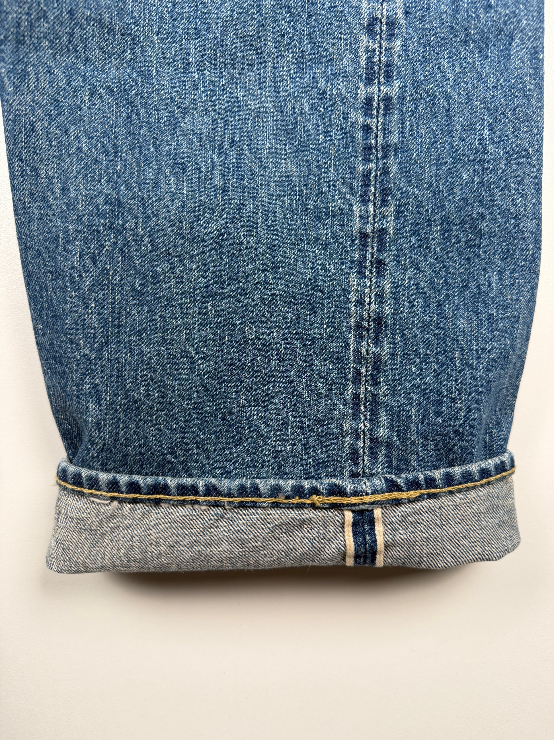 The denim is constructed using OrSlow's original 13.5oz selvedge denim fabric that is rope-dyed and woven on vintage shuttle looms in Japan. Once constructed, the pants are wash processed to recreate an appearance of denim that has been worn and washed regularly for 2 years.
