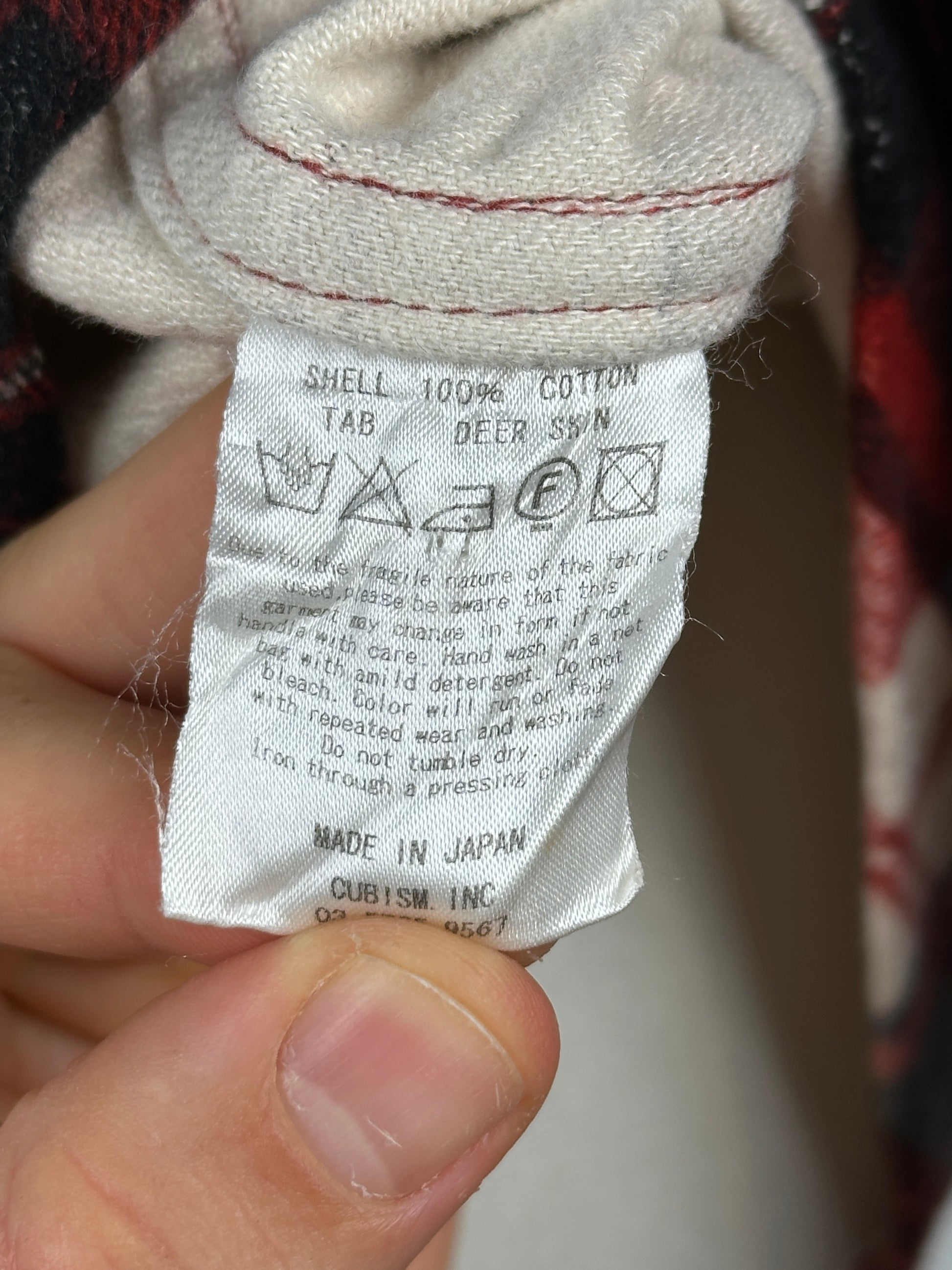 The shirt is constructed using a mid-weight brushed cotton flannel fabric featuring a printed check pattern.