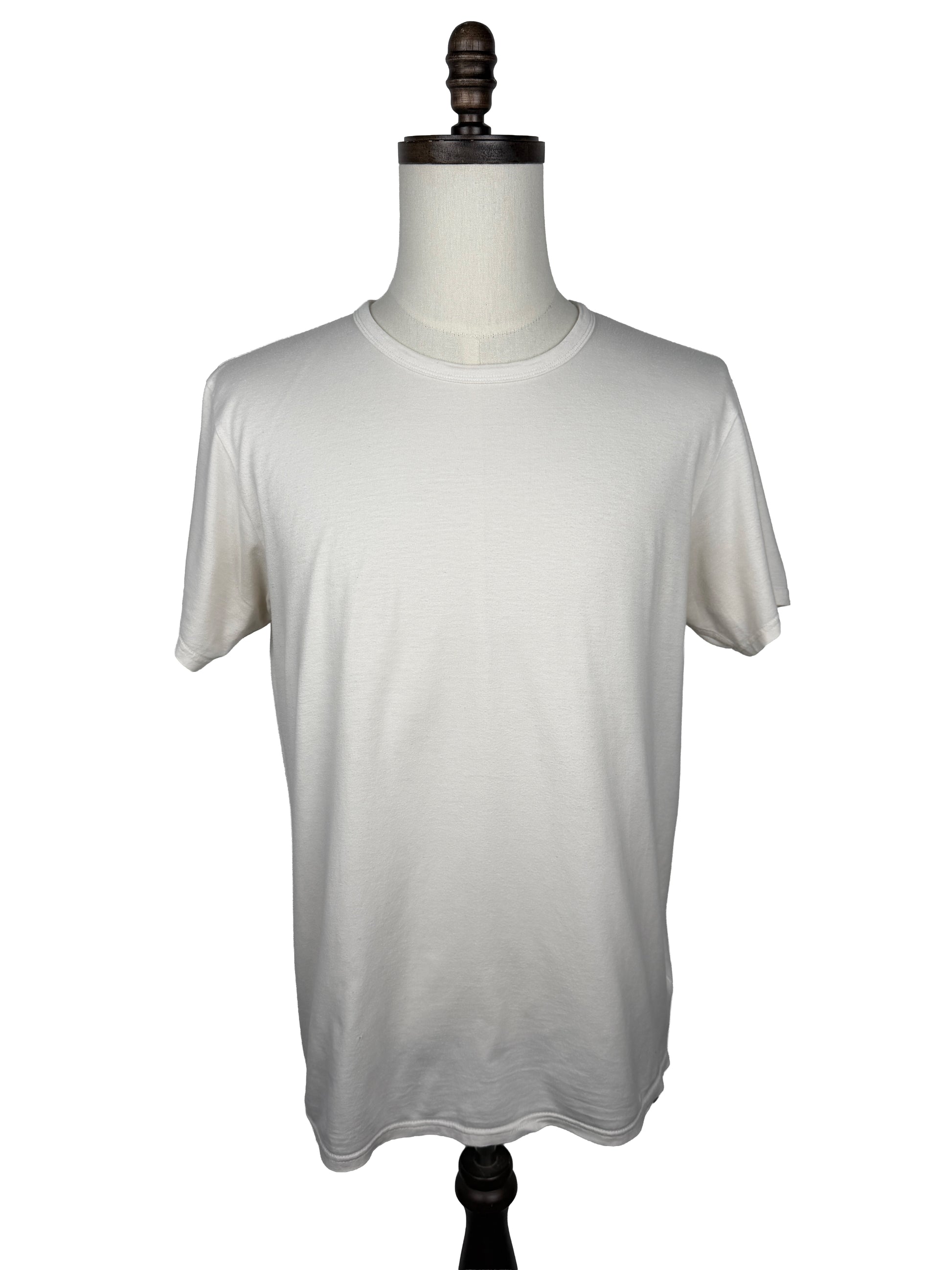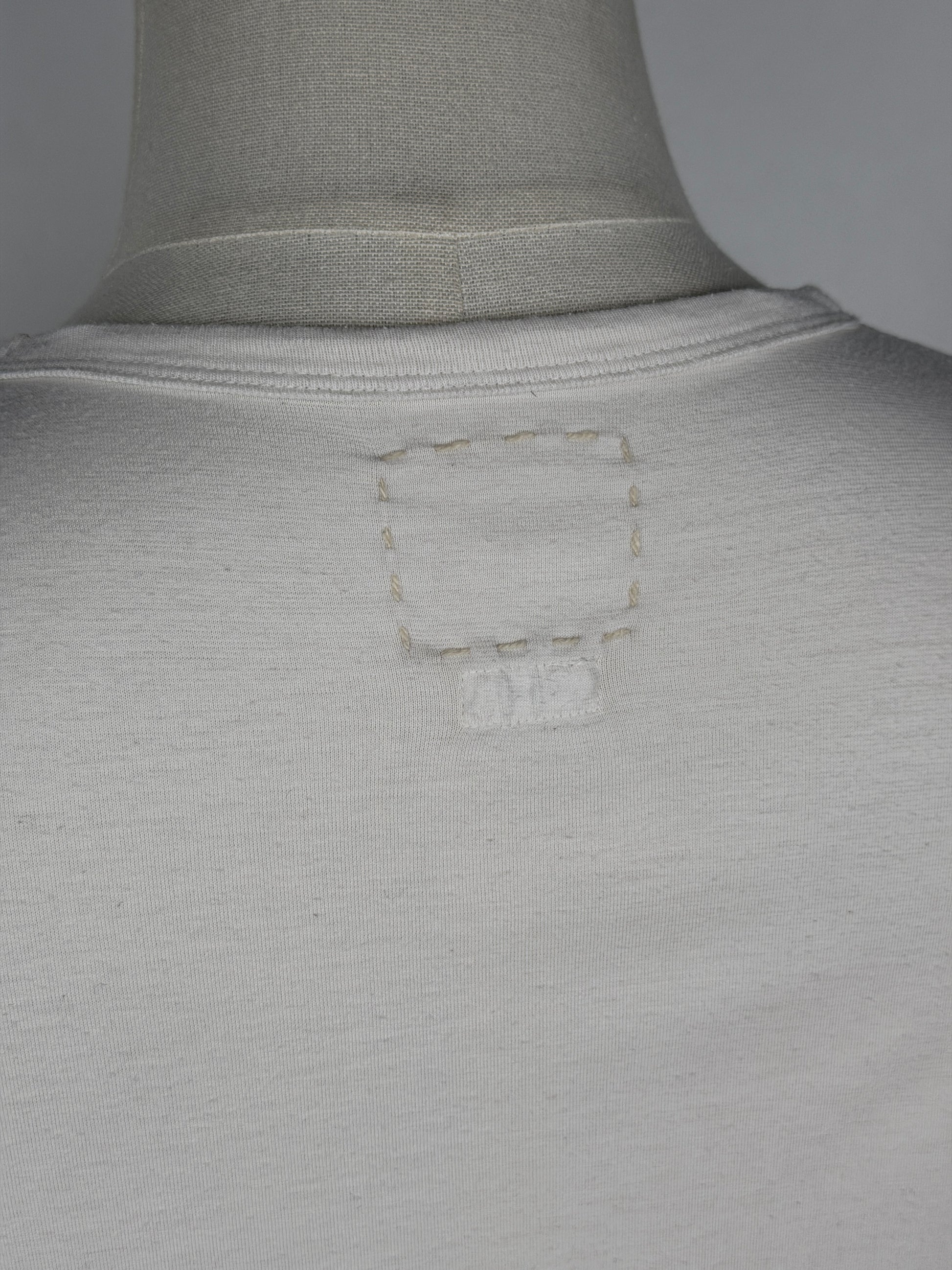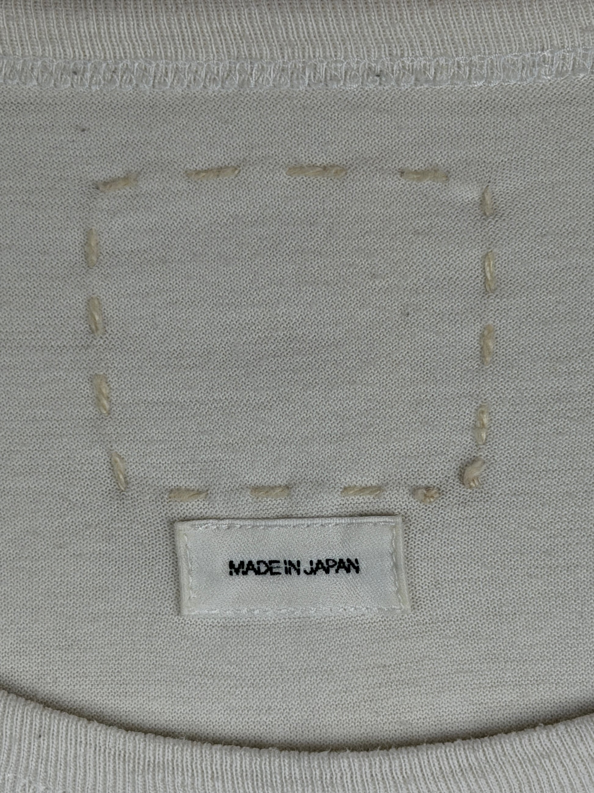 The tee is constructed using a West Indian Sea Island cotton fabric. Sea Island cotton is a soft premium cotton with ultra-long fibers that is often described as having a "silk-like luster" and a "hand feel as soft as cashmere" and is one of the highest-grade cotton strains in the world. It can retain its natural disposition even when worn or washed repeatedly in which the longer it is used, the more you can feel its quality. Once constructed, the shirt was one wash processed for a worn-in look.