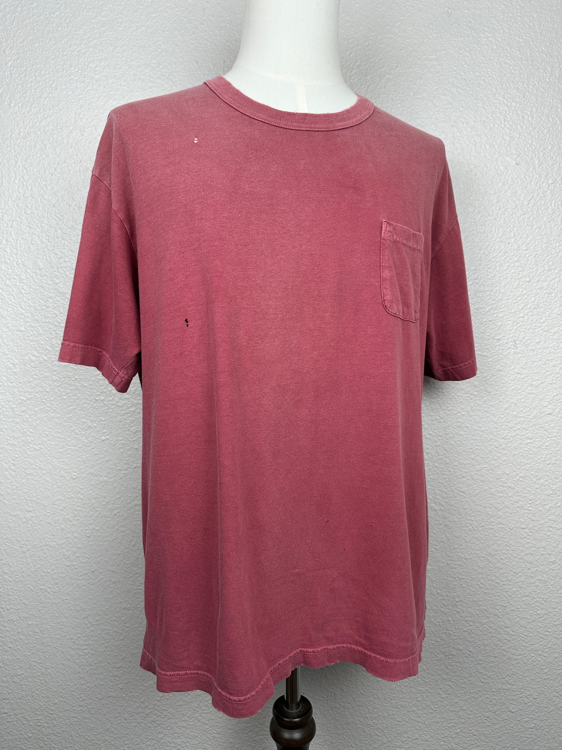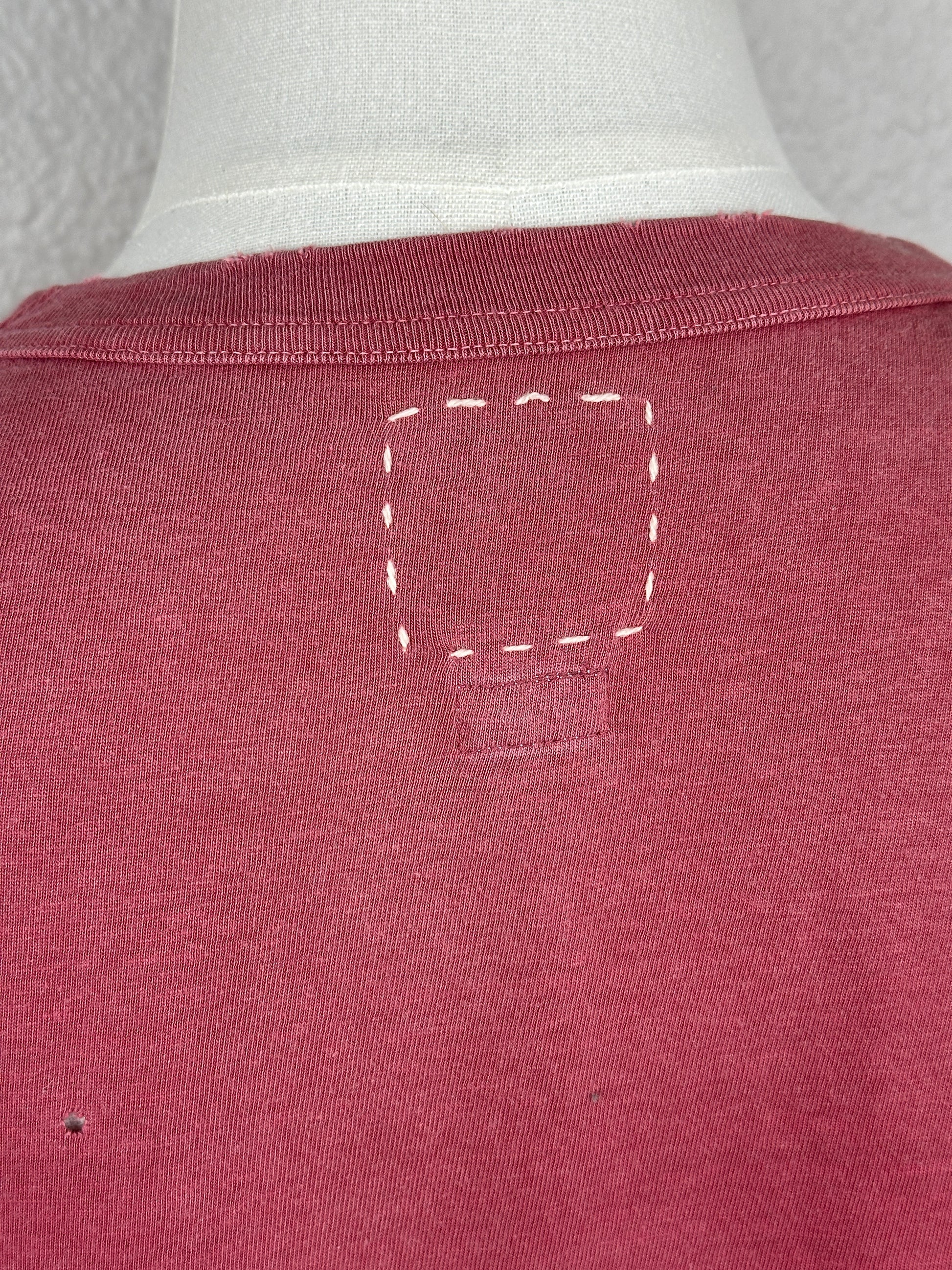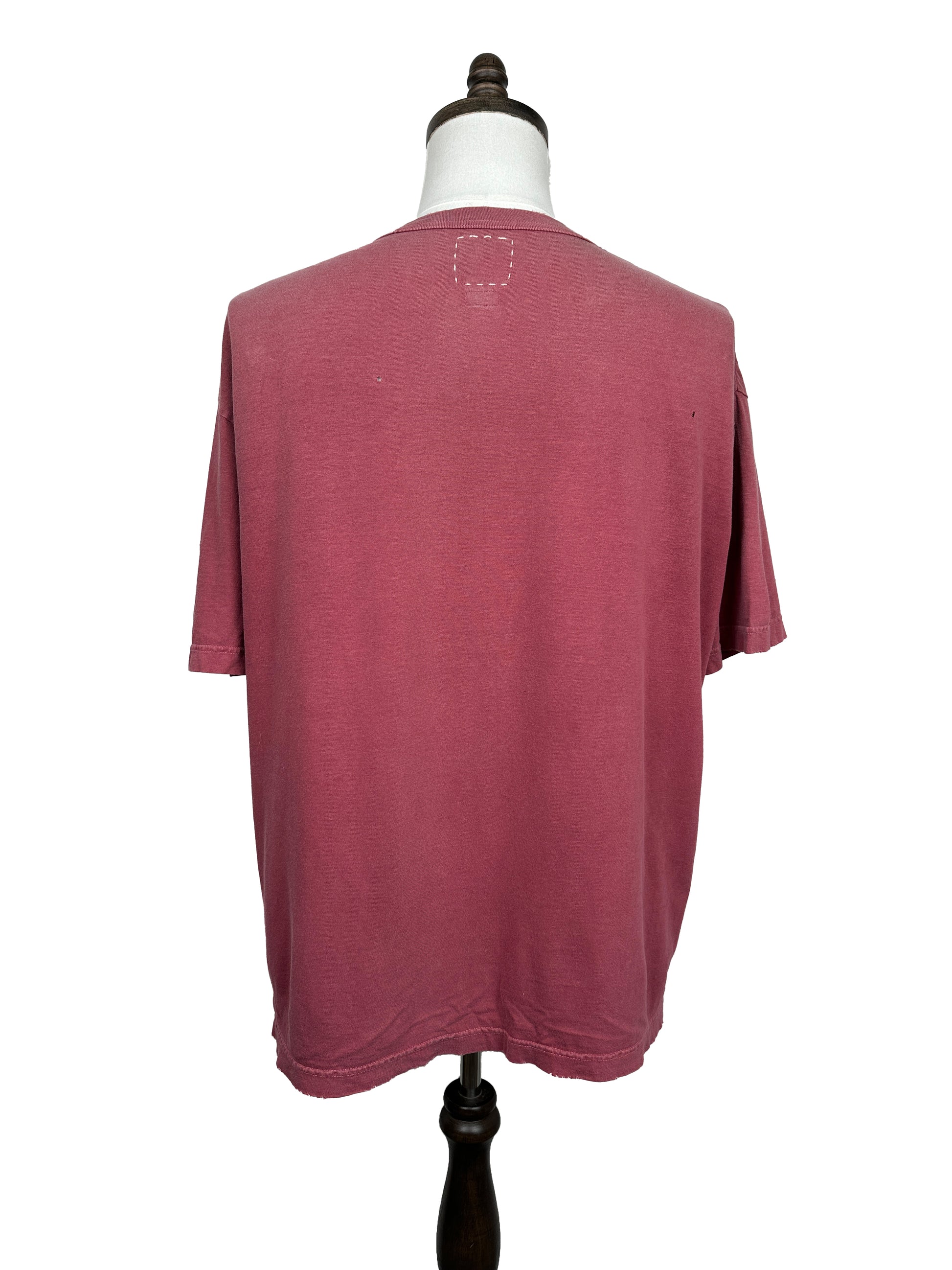 The tee is made using a textured vintage-like cotton. Once constructed, the tee was garment dyed and crash processed, resulting in an authentic vintage character throughout.