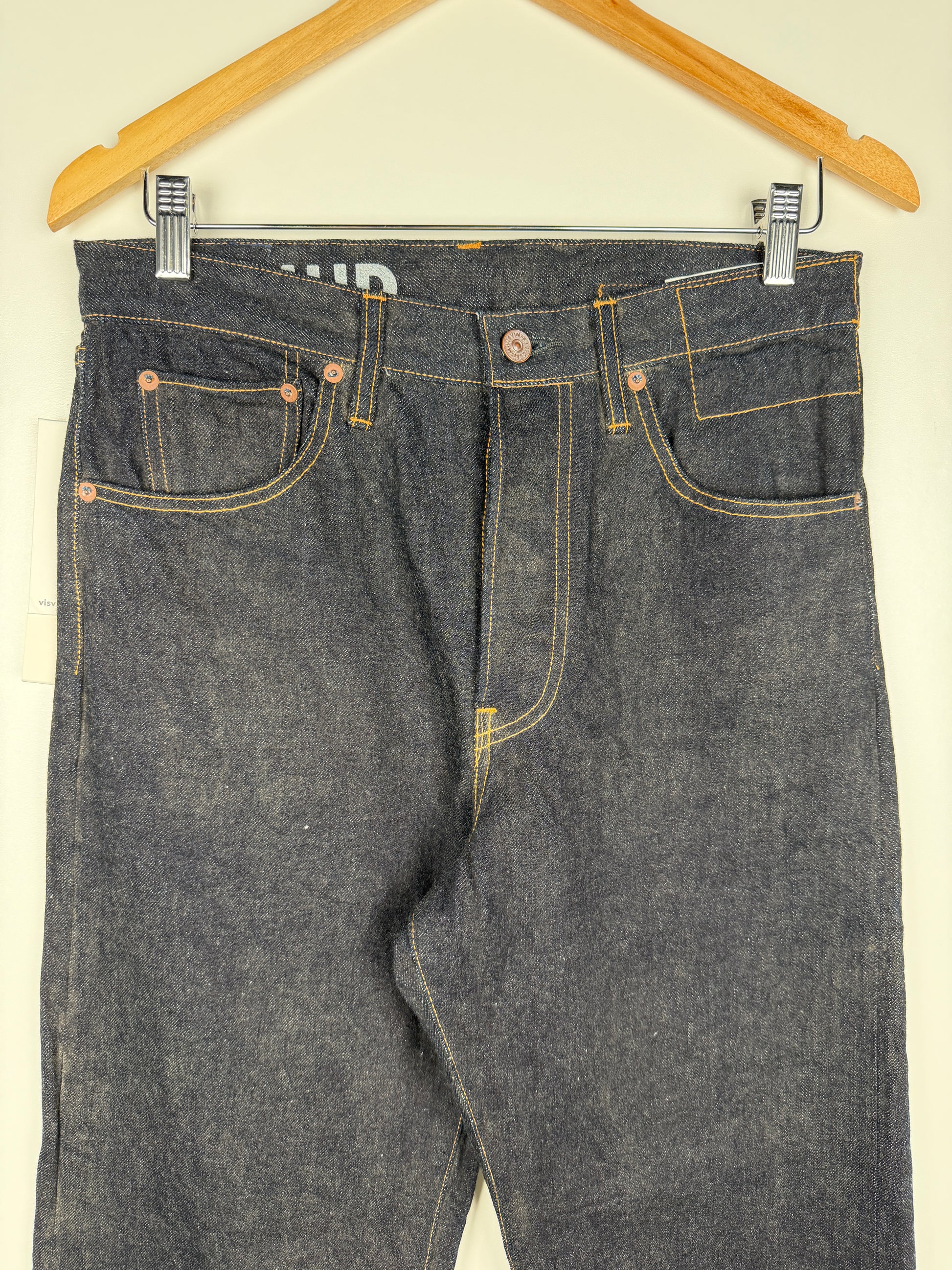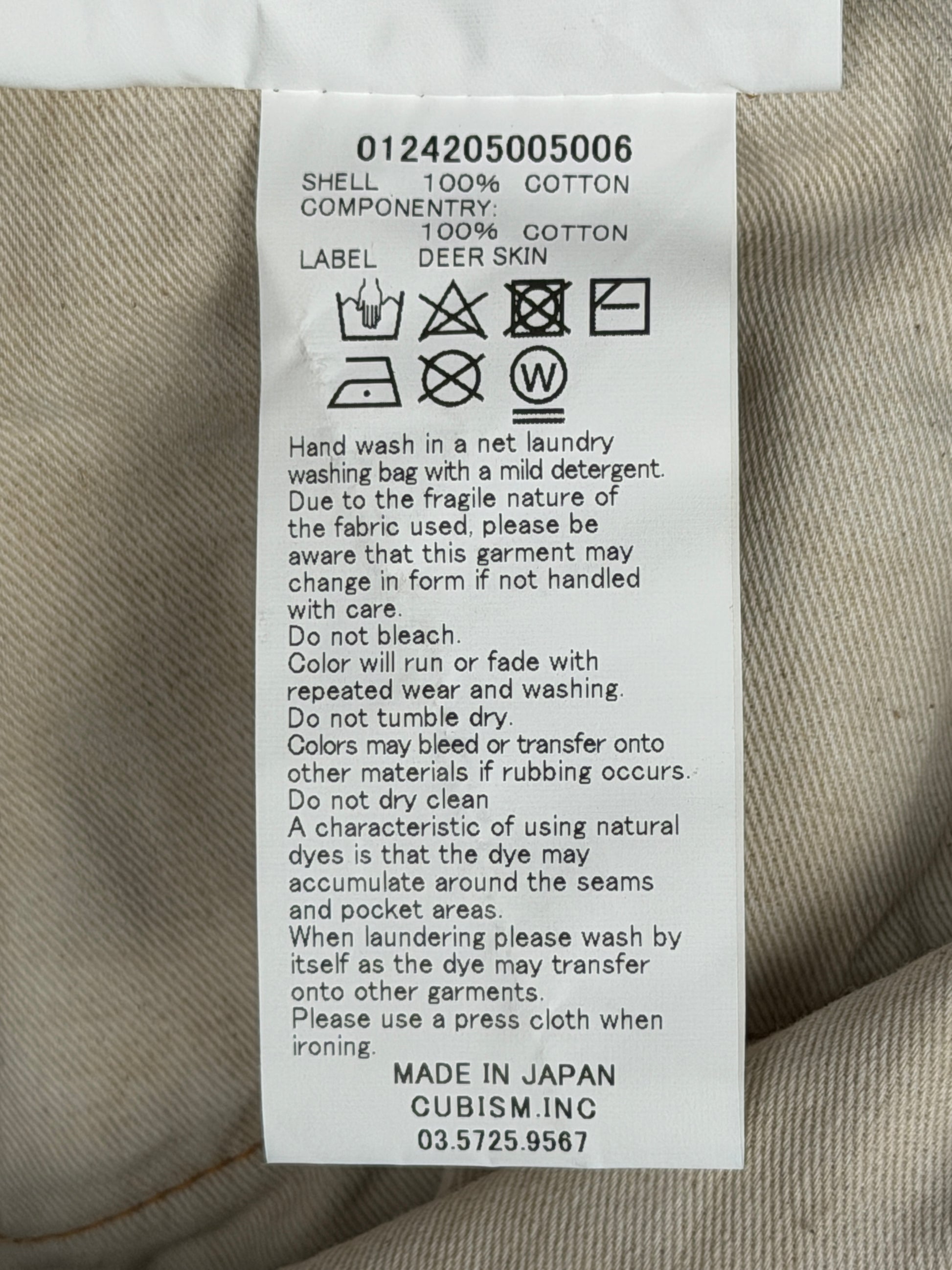 The denim is constructed using Visvim's custom raw 15oz Red Selvedge Denim. This fabric is made with the deepest colored yarn possible, utilizing the rope dyeing method, and has a deep indigo hue that can be retained for a longer period of time. Additionally, the denim woven at a very low setting using uneven yarn lengths for a unique texture that will develop more with use. Once constructed, the denim was soaked and dyed in iron-rich mud from local Amami-Ōshima rice paddies in Japan for a unique finish.