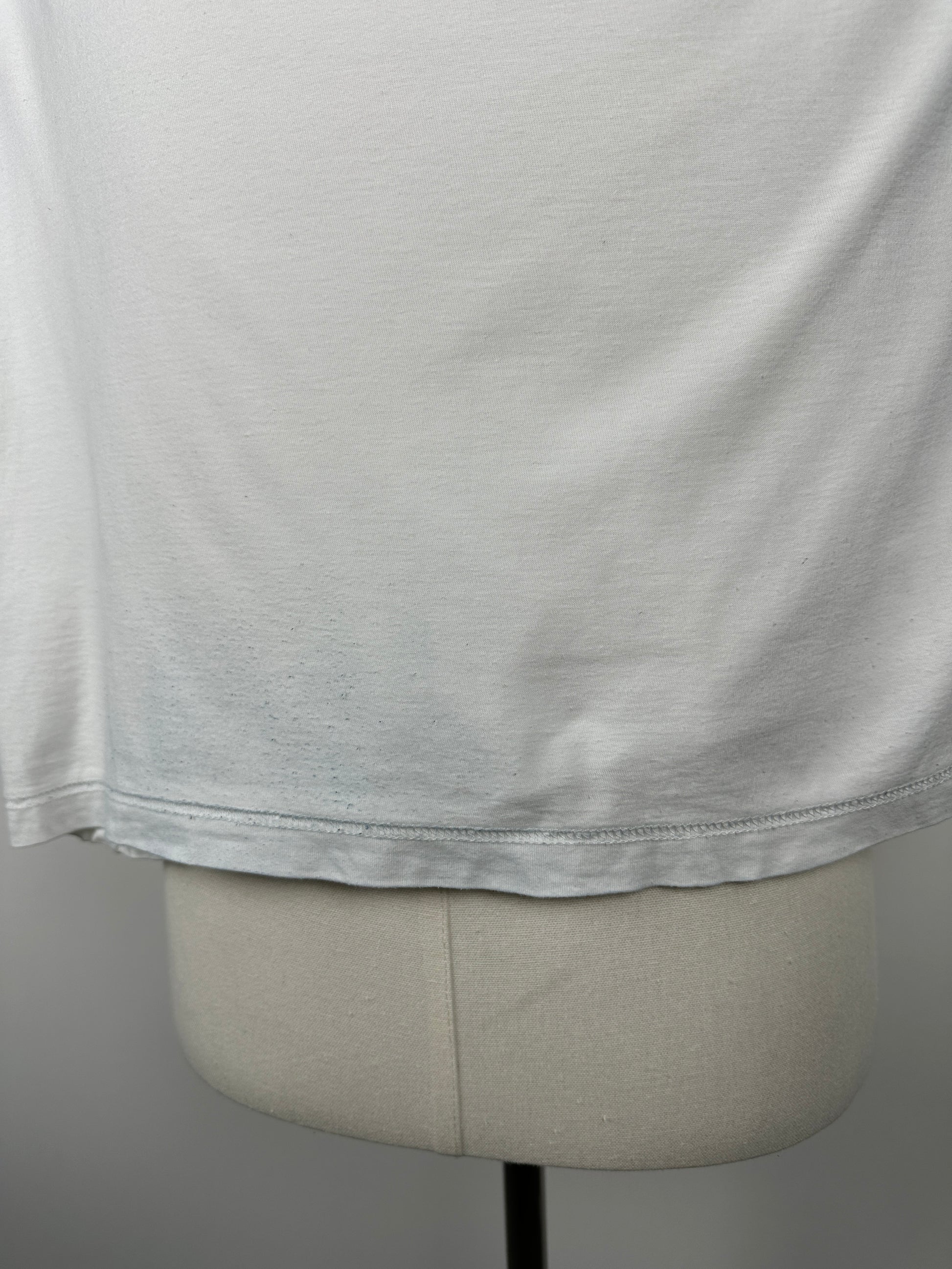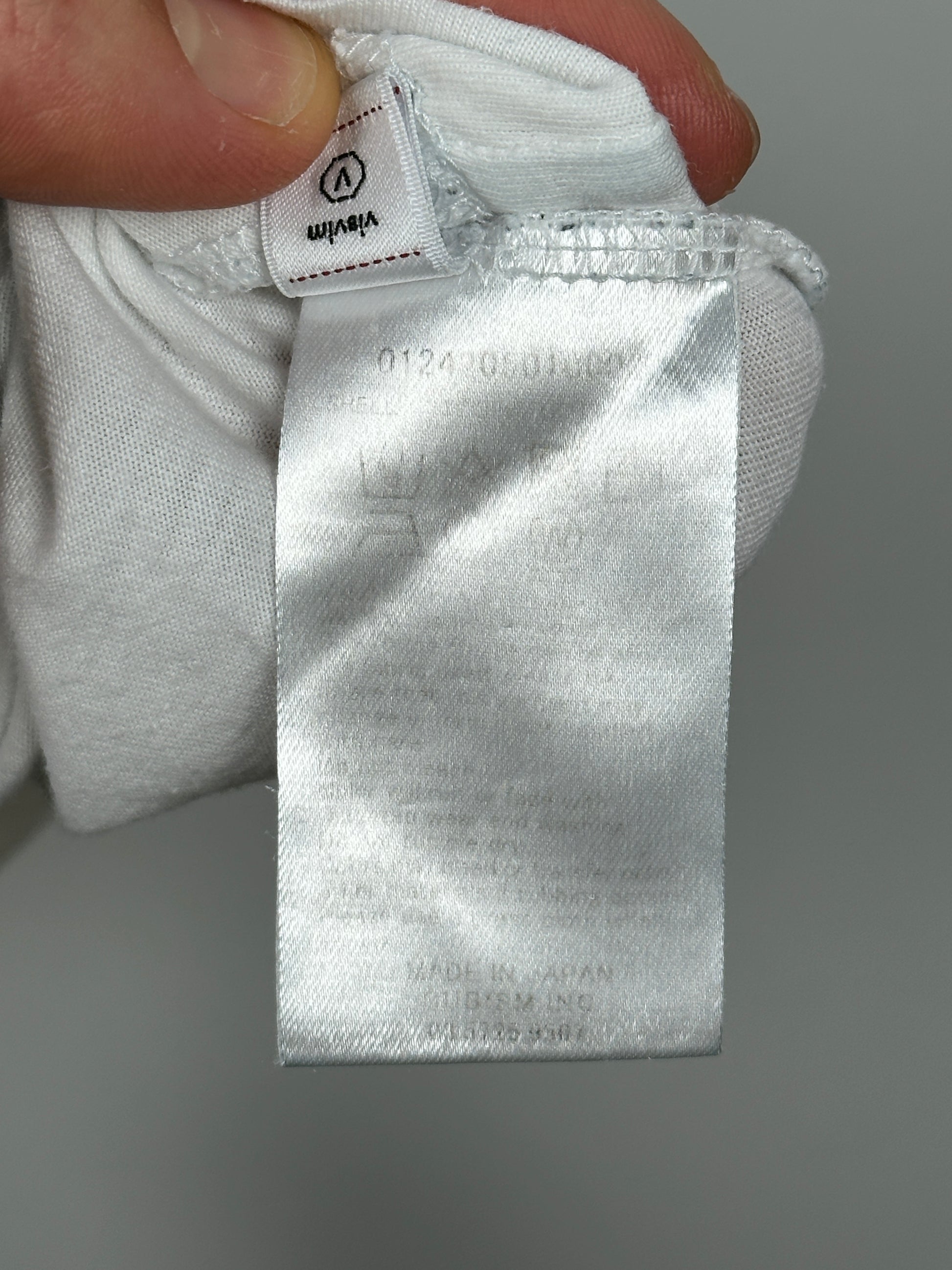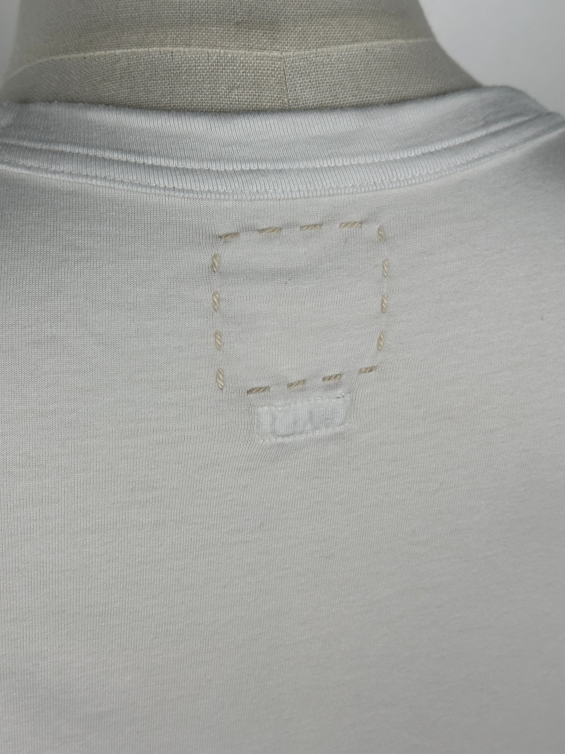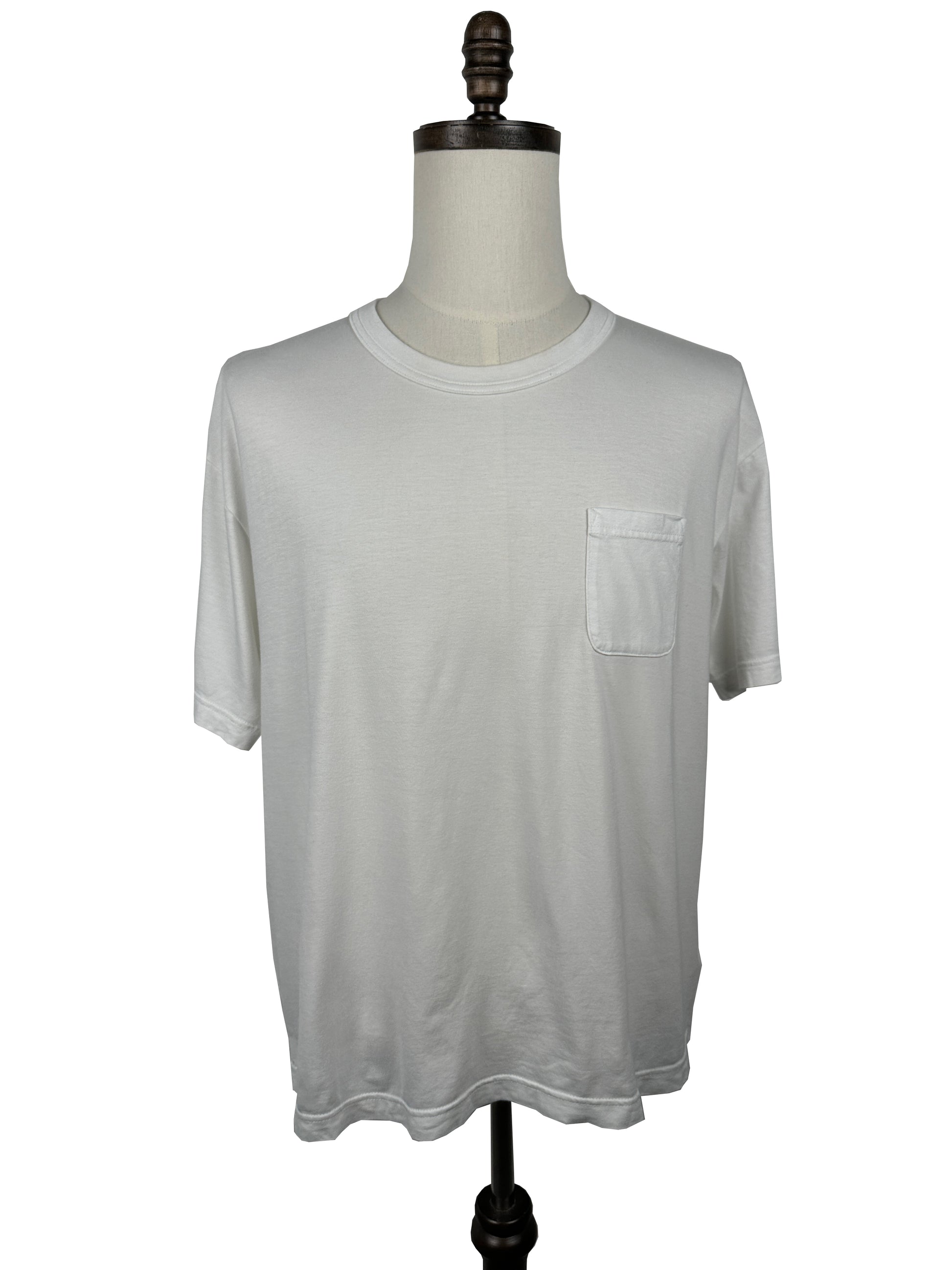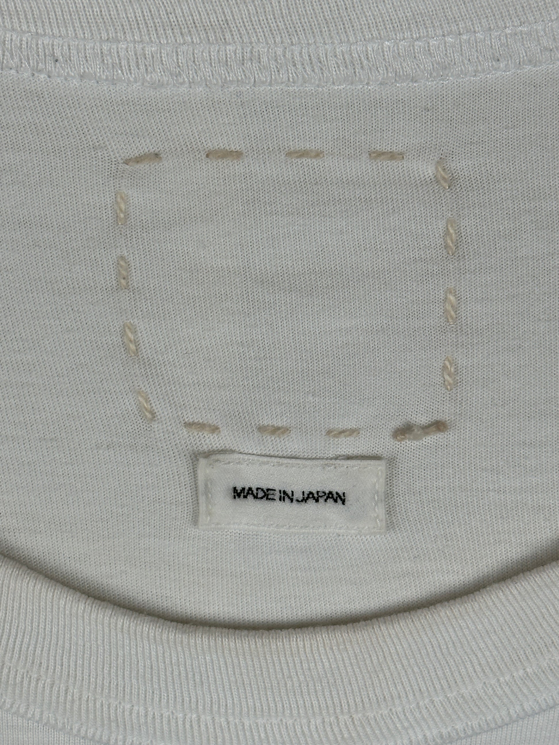 The tee is constructed using a West Indian Sea Island cotton fabric. Sea Island cotton is a soft premium cotton with ultra-long fibers that is often described as having a "silk-like luster" and a "hand feel as soft as cashmere" and is one of the highest-grade cotton strains in the world. It can retain its natural disposition even when worn or washed repeatedly in which the longer it is used, the more you can feel its quality. Once constructed, the shirt was one wash processed for a worn-in look.