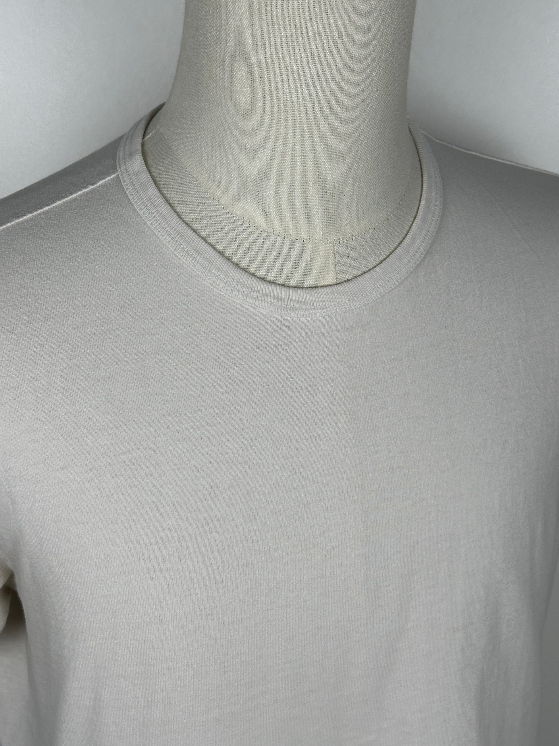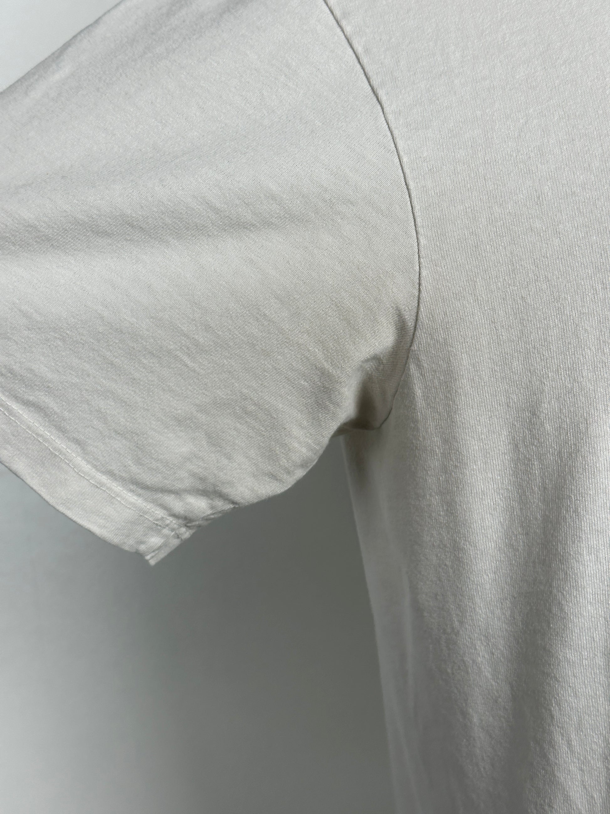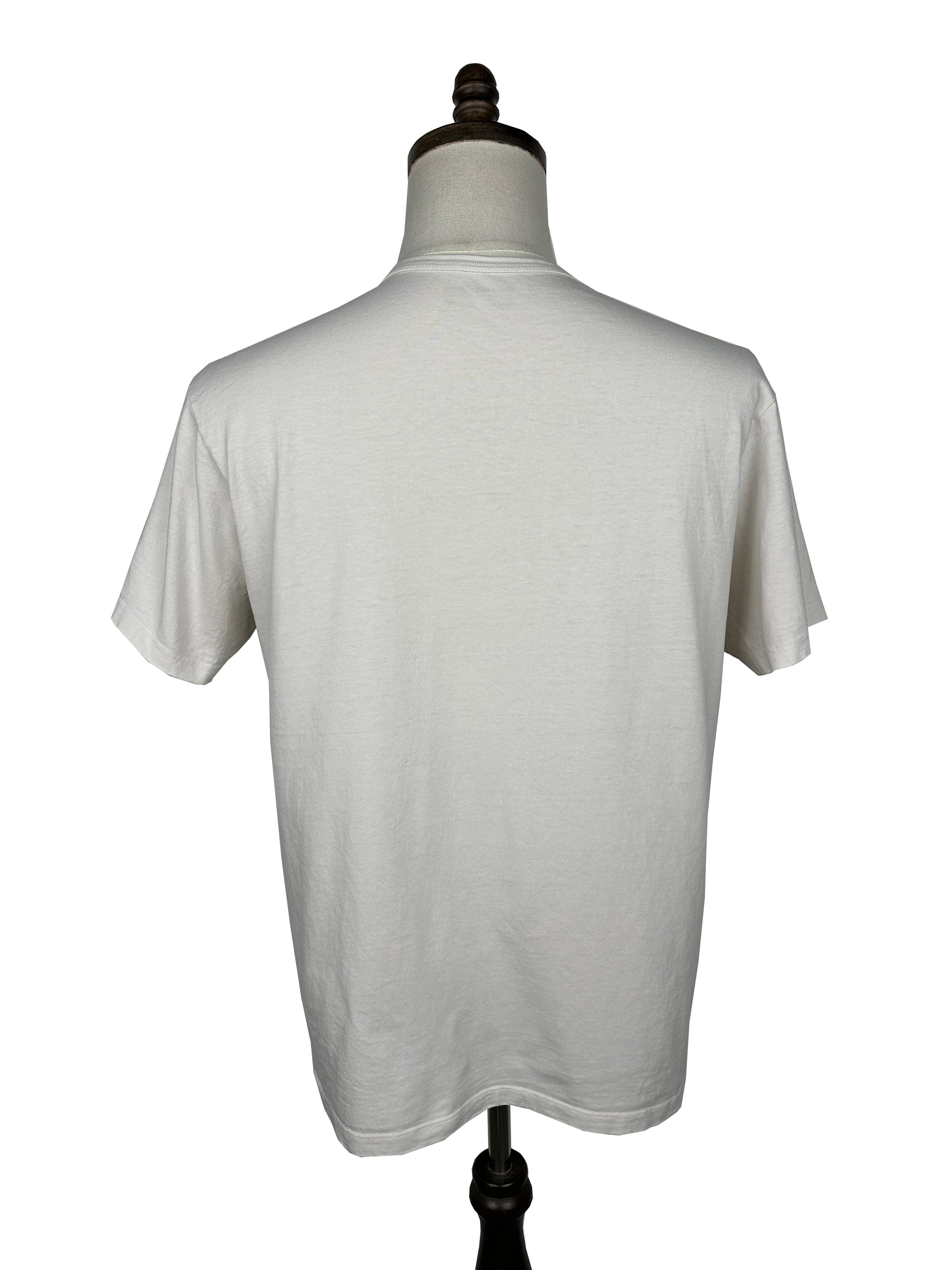 The tee was constructed in LA using a custom tubular knit 6oz cotton jersey fabric that features a crisp, dry hand. Once constructed, the tee was sanforized to eliminate shrinkage with washing.