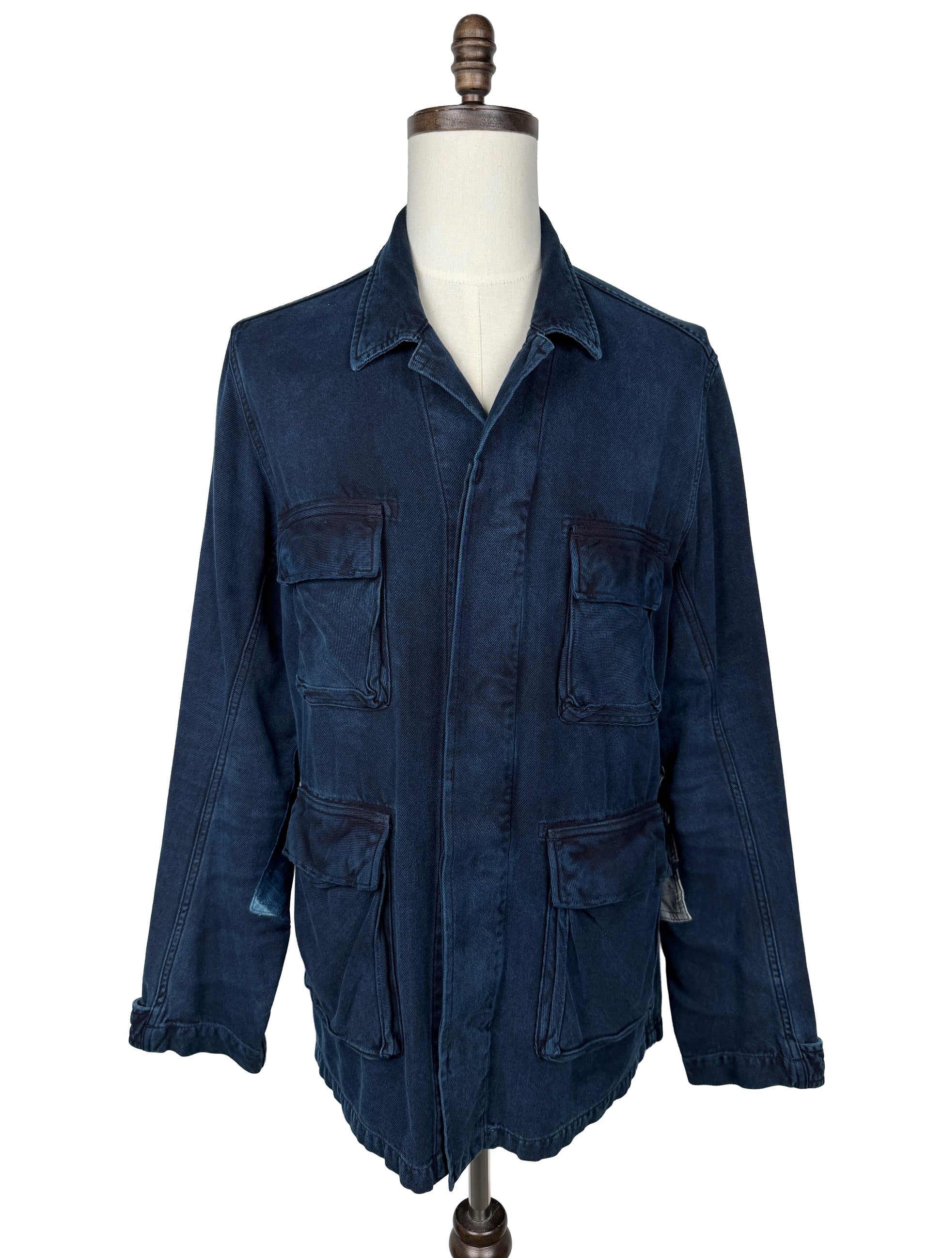 From Visvim’s Spring/Summer 2012 Indigo Camping Trailer Collection comes the Kilgore Jacket in Dark Indigo. Inspired by the classic military jungle jacket, the Kilgore features a slim cut with four flap-over buttoned fastened pockets, adjustable cuffs and torso, and a hidden front button placket.