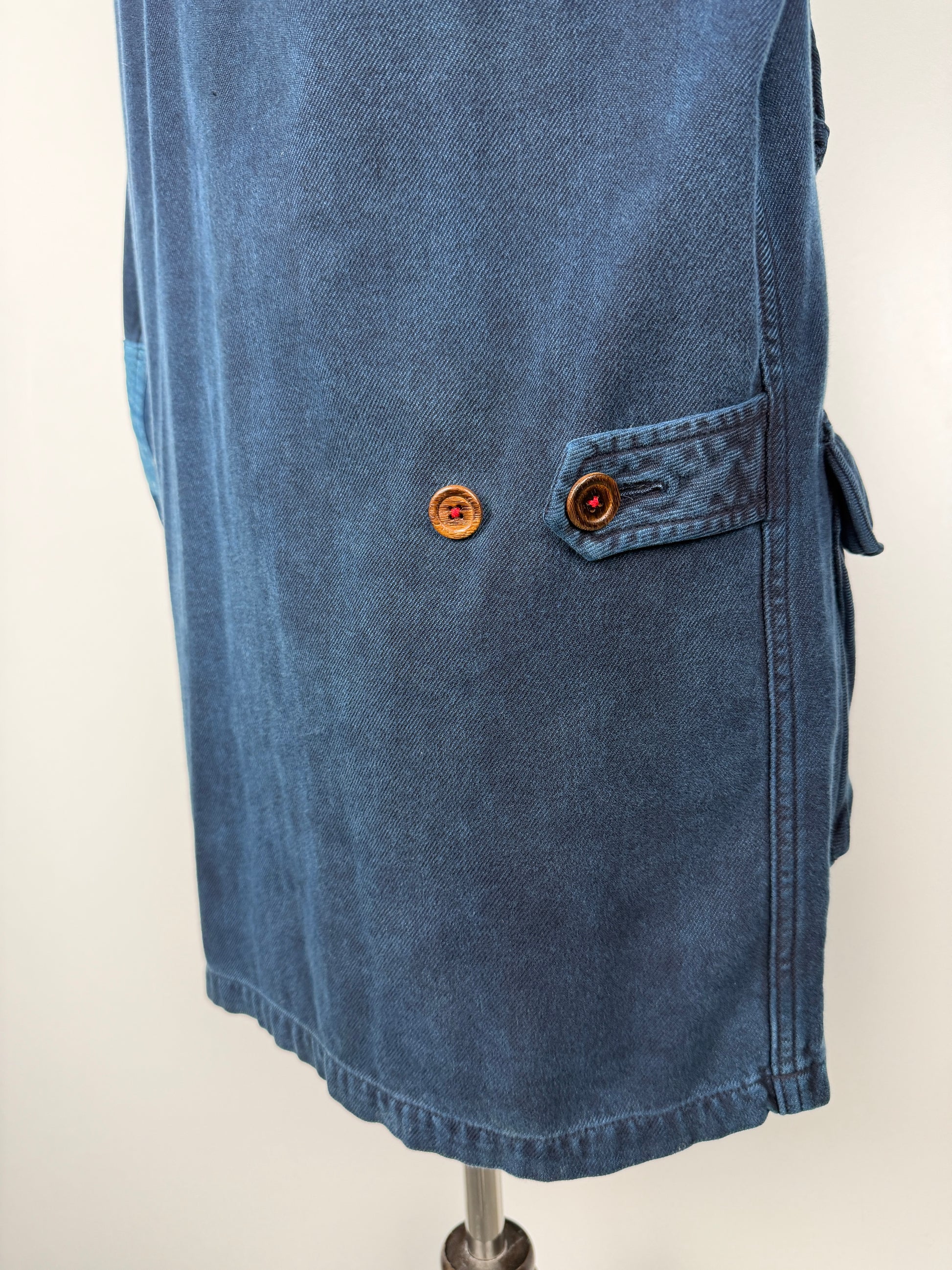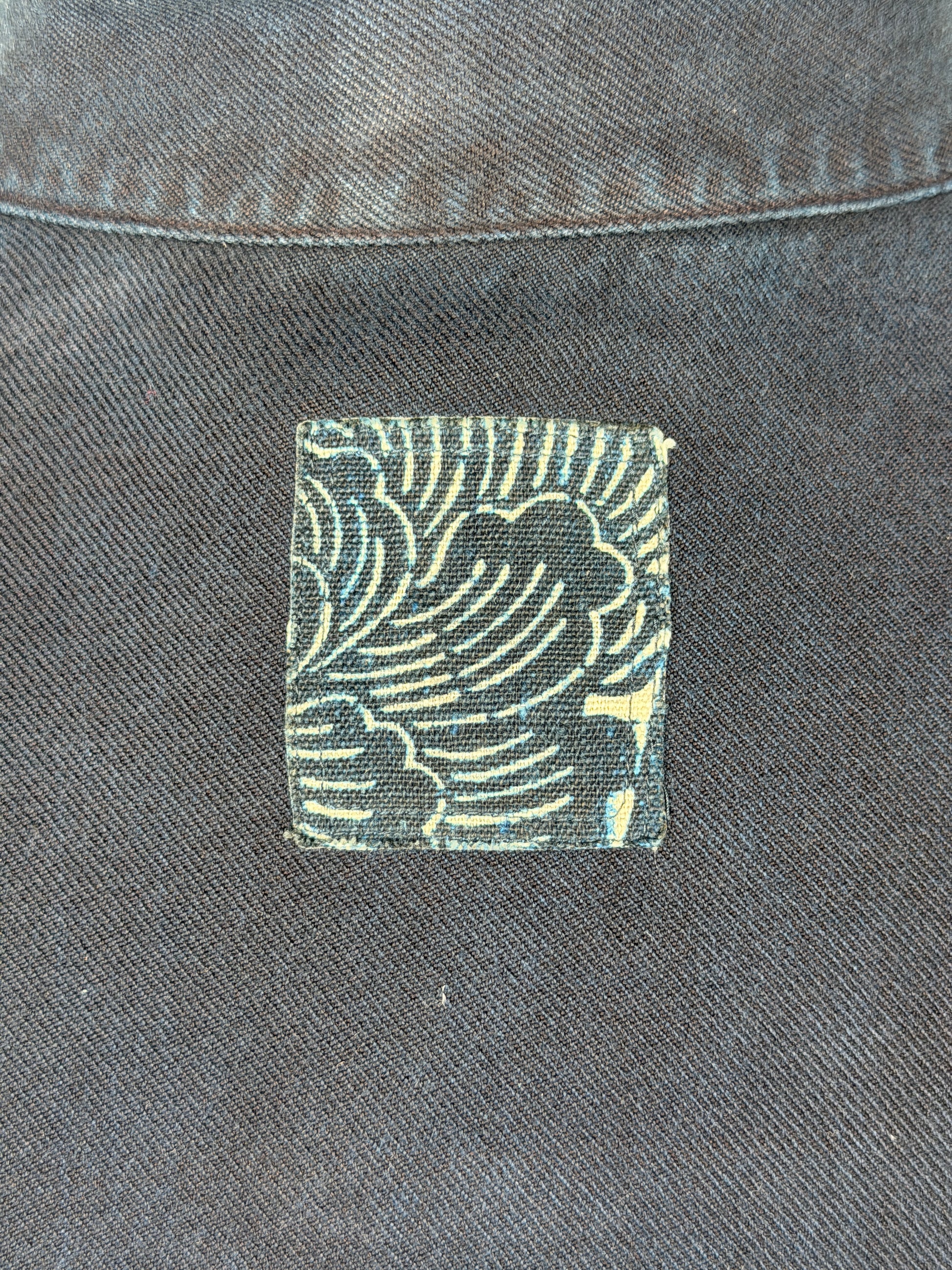 The jacket is constructed using a yarn-dyed check fabric made from original spun Egyptian Giza cotton yarns. Once constructed, the jacket was indigo overdyed for an uneven finish.