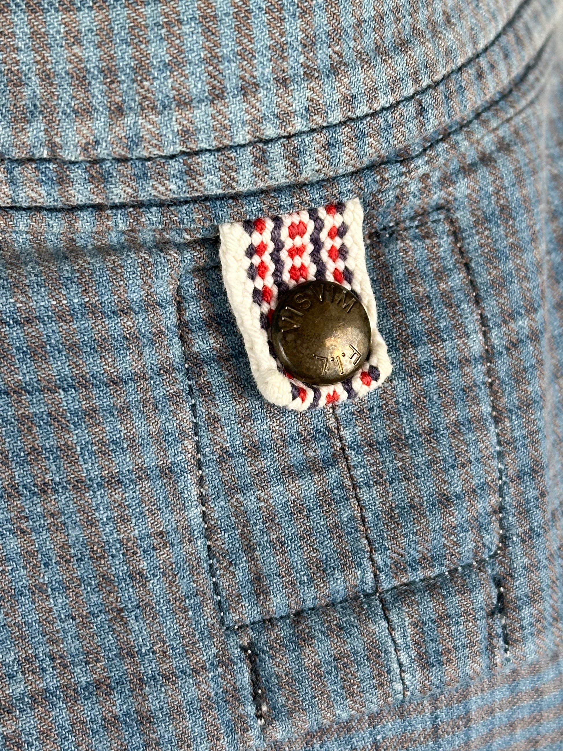 Additional details include original wood buttons, and visvim's signature woven collar detail featuring a branded brass button.
