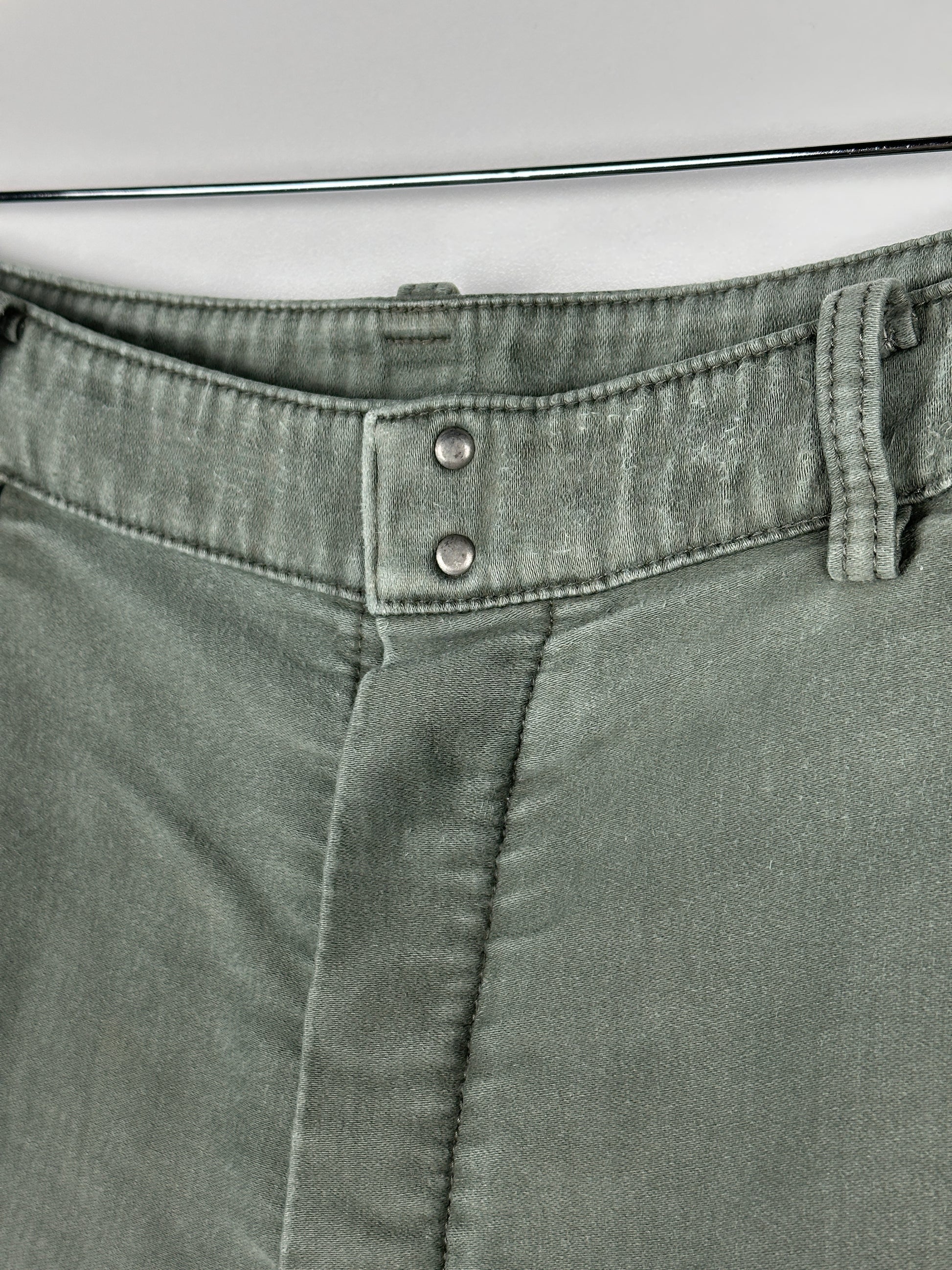 The pants are constructed using original spun cotton moleskin that has undergone a damage process for a worn-in character.