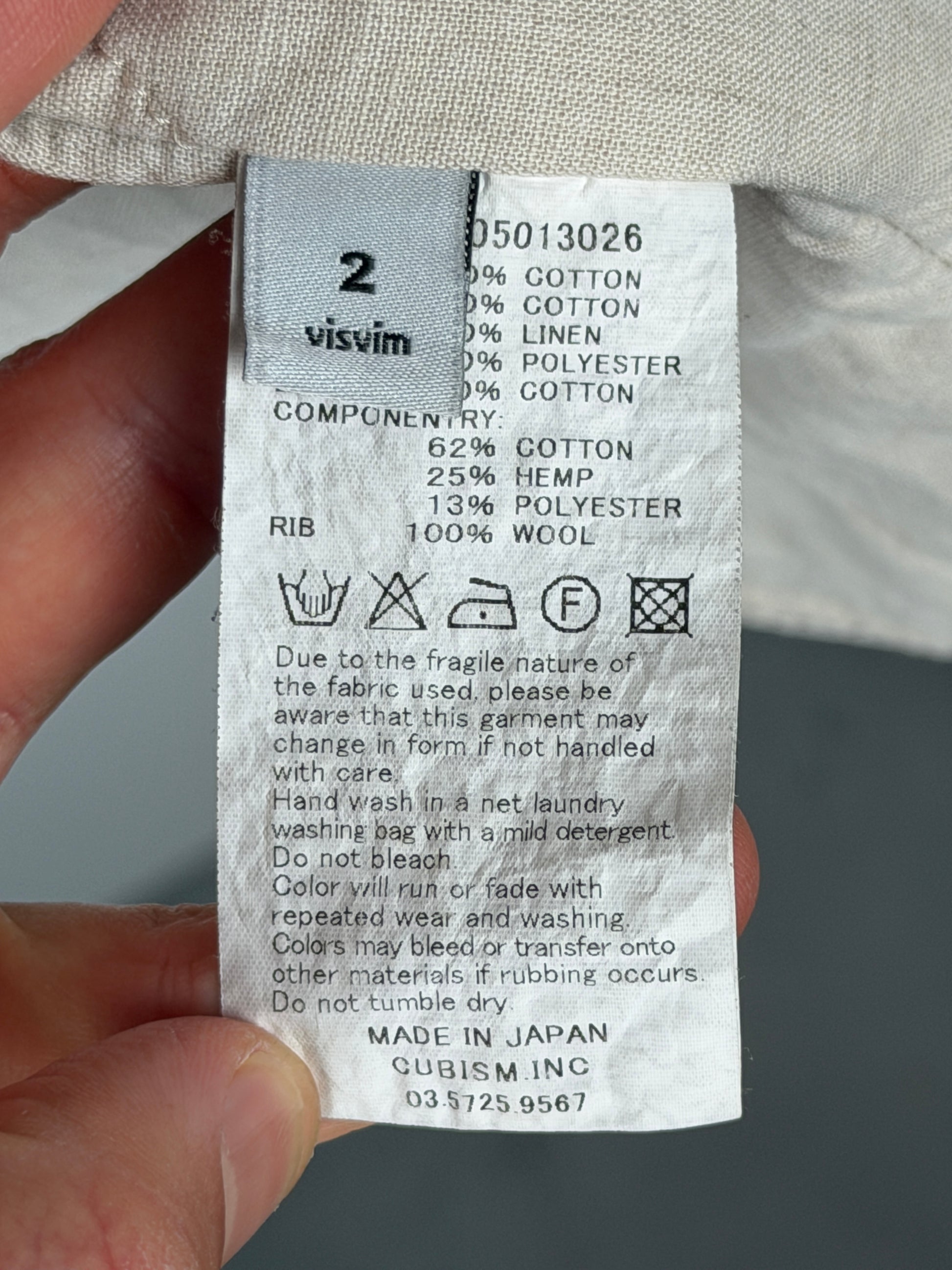 Additional details include a hand-painted "US" sleeve detail, wool ribbing, cotton lined sleeves, cotton-hemp wale corduroy pocket piping, and custom vegetable ivory buttons of various style and color.