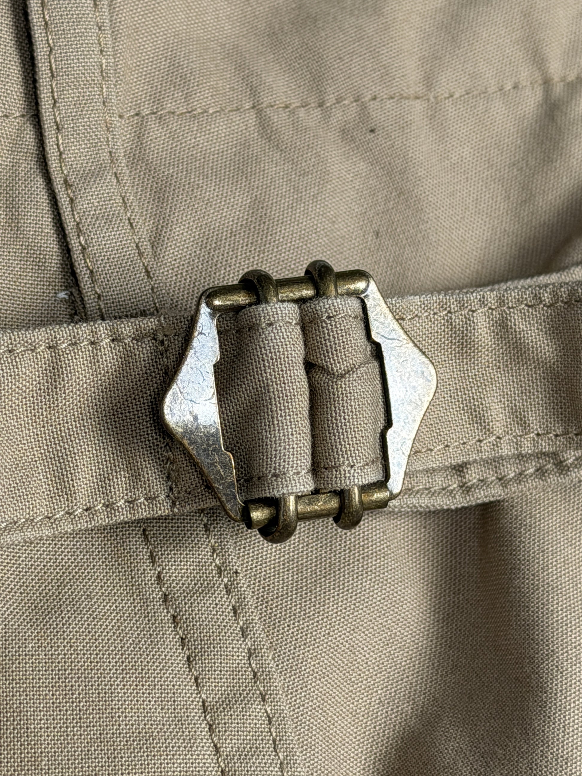 Additional details include custom vegetable ivory buttons, original damage processed brass buckle hardware, and a vintage Kofu label.