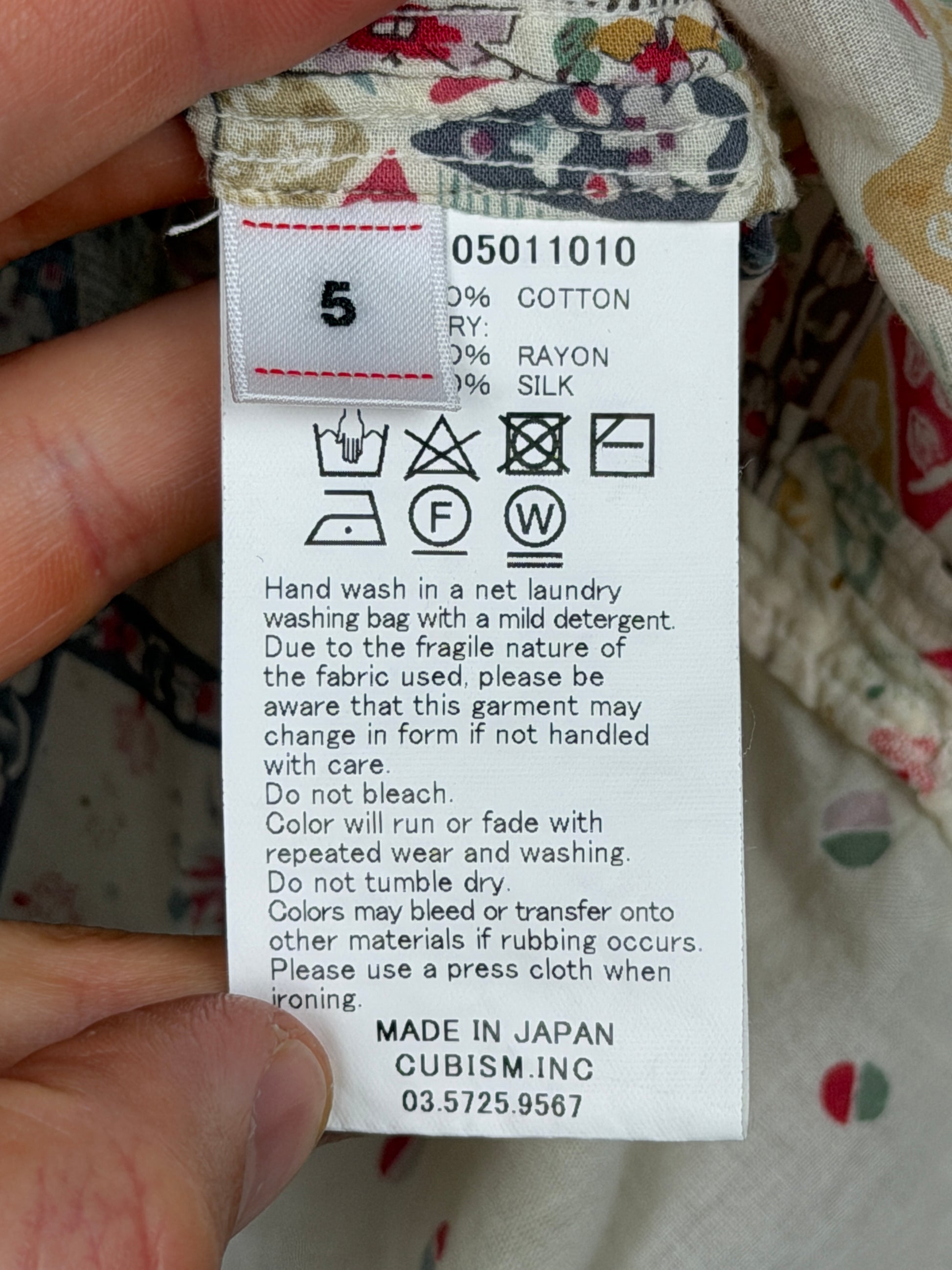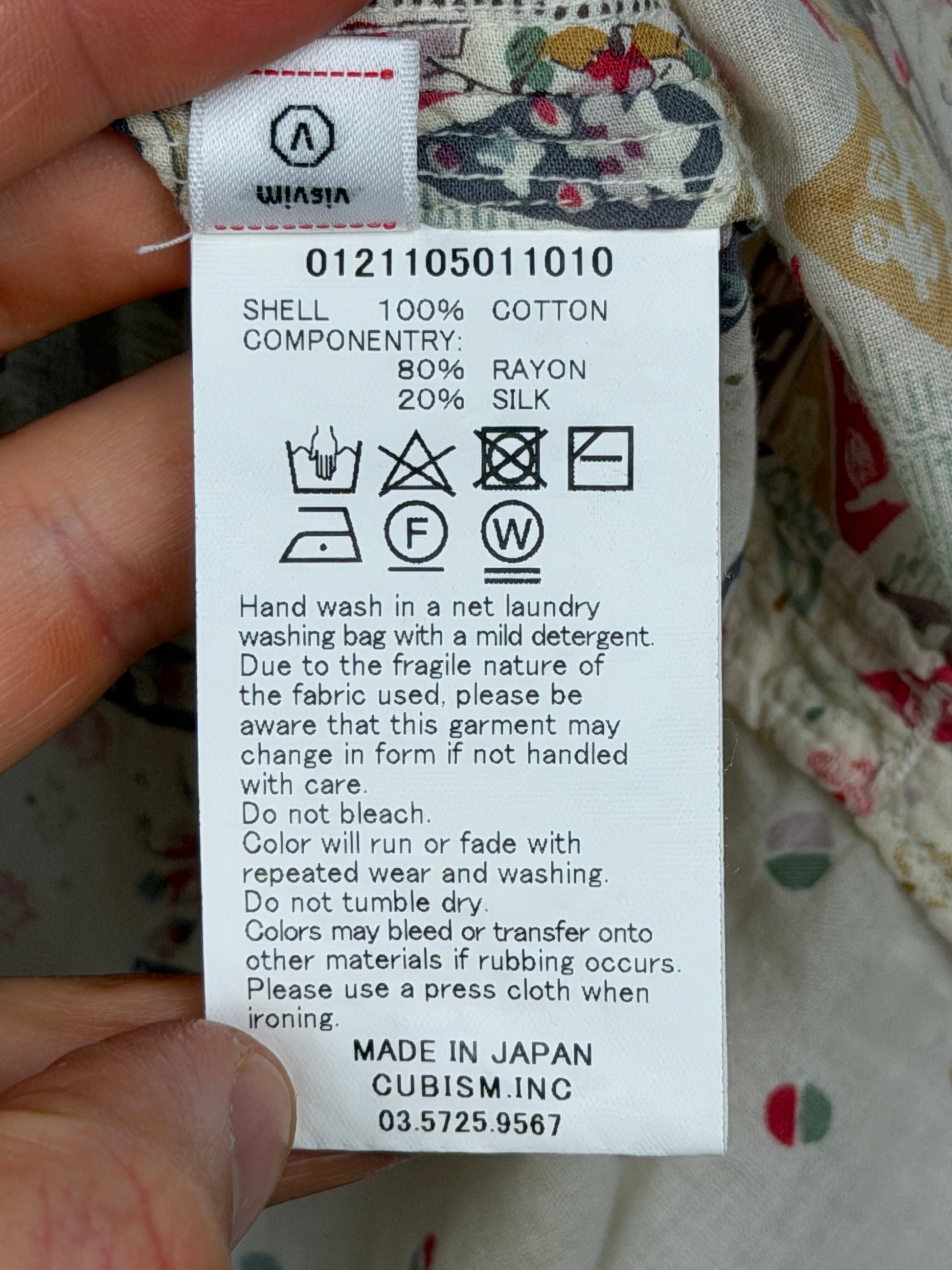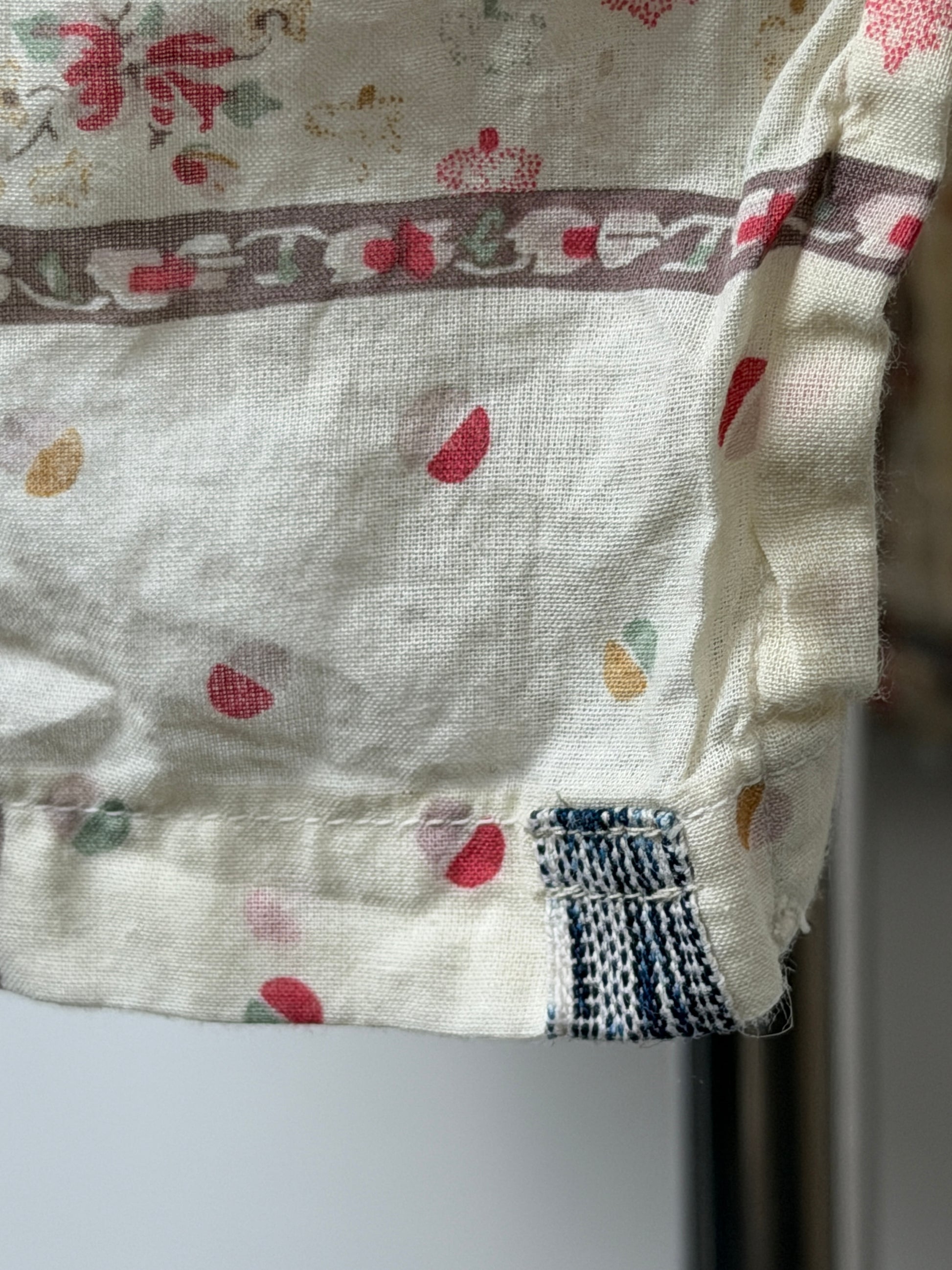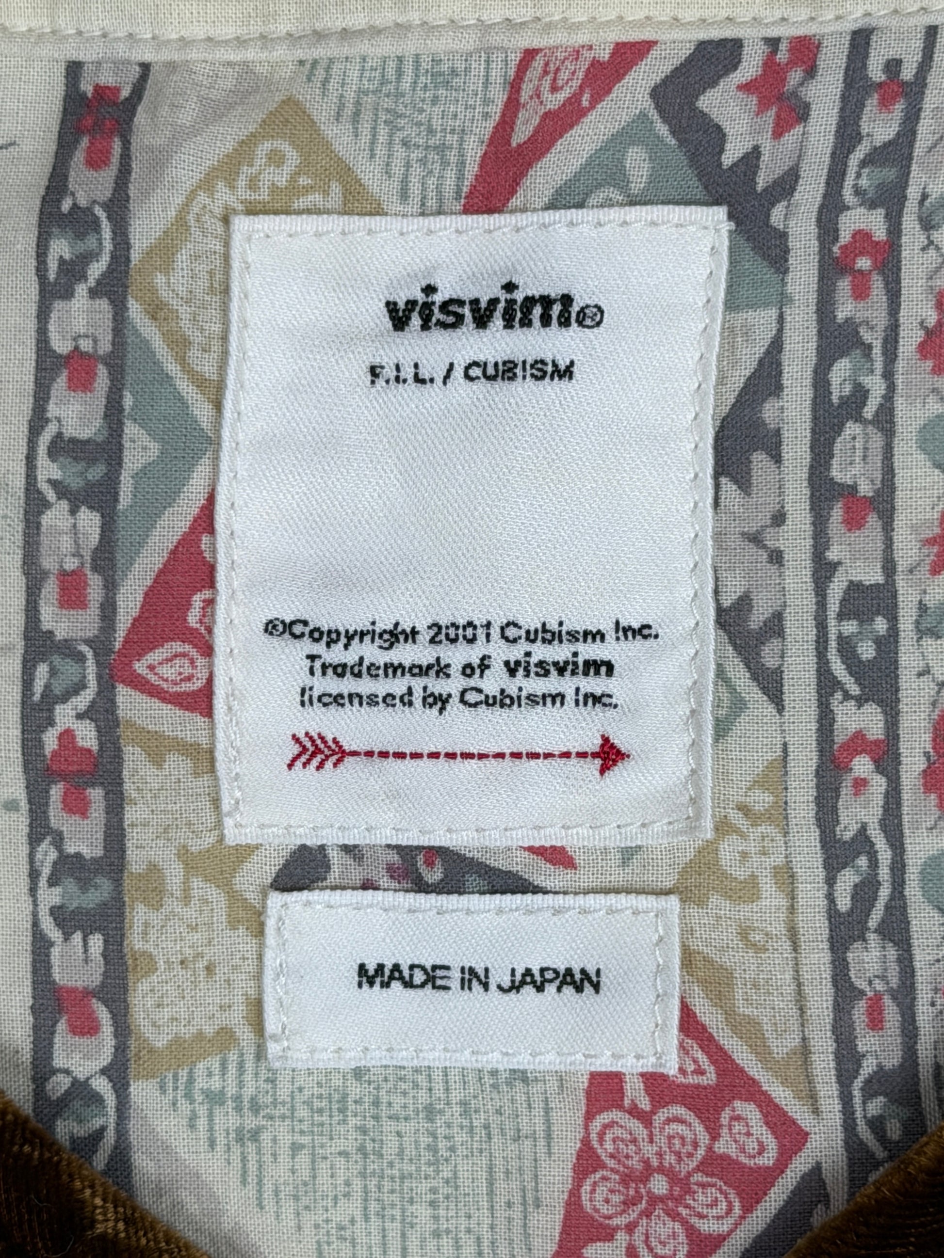 The shirt is constructed using original natural-dyed bandana printed khadi cotton panels that are patch-worked together by hand. Khadi cloth is known as the purely hand-spun and hand-woven fabric that became a symbol of India's self-reliance and independence during the Swadeshi Movement under the Mahatma Gandhi.