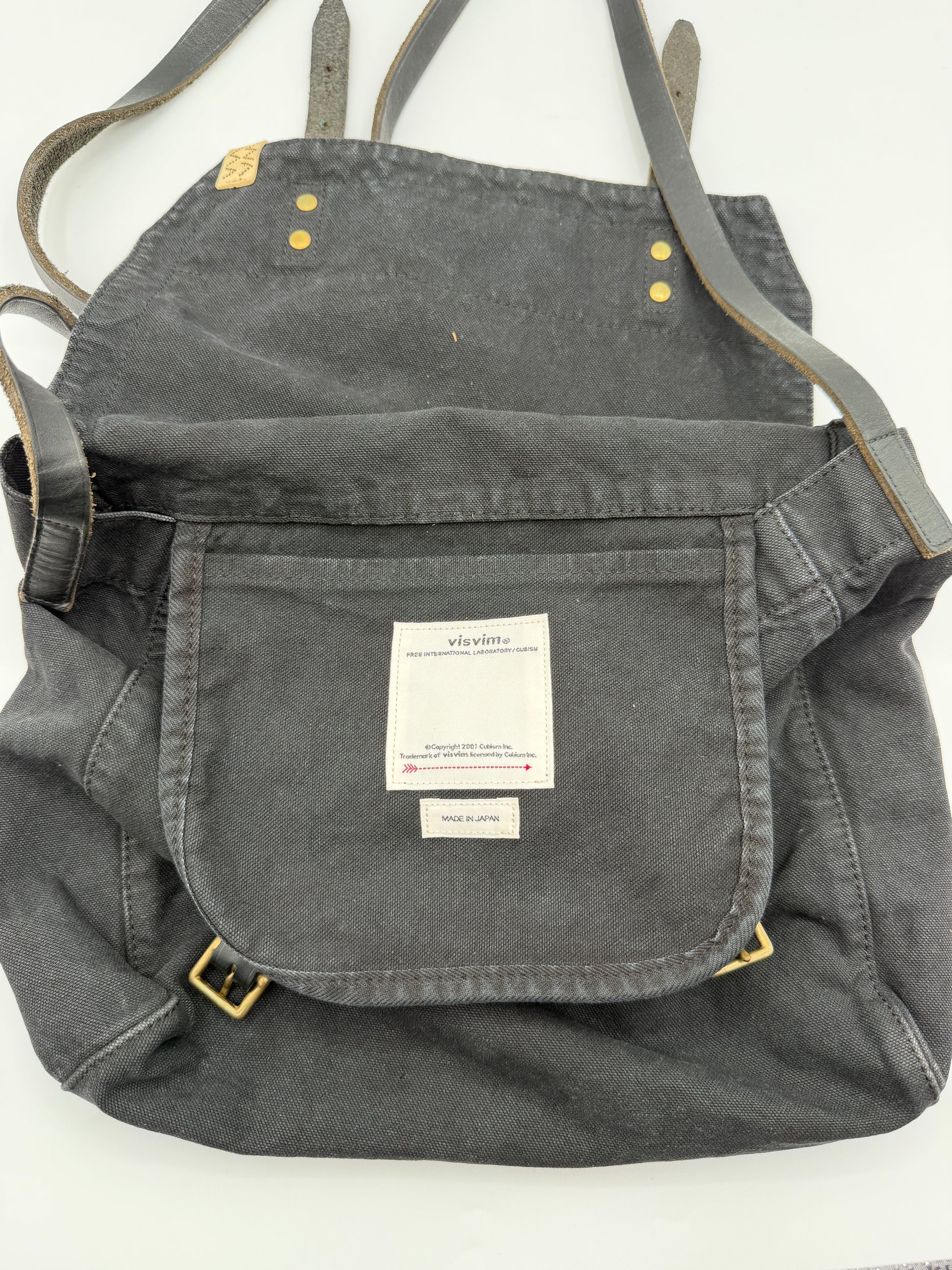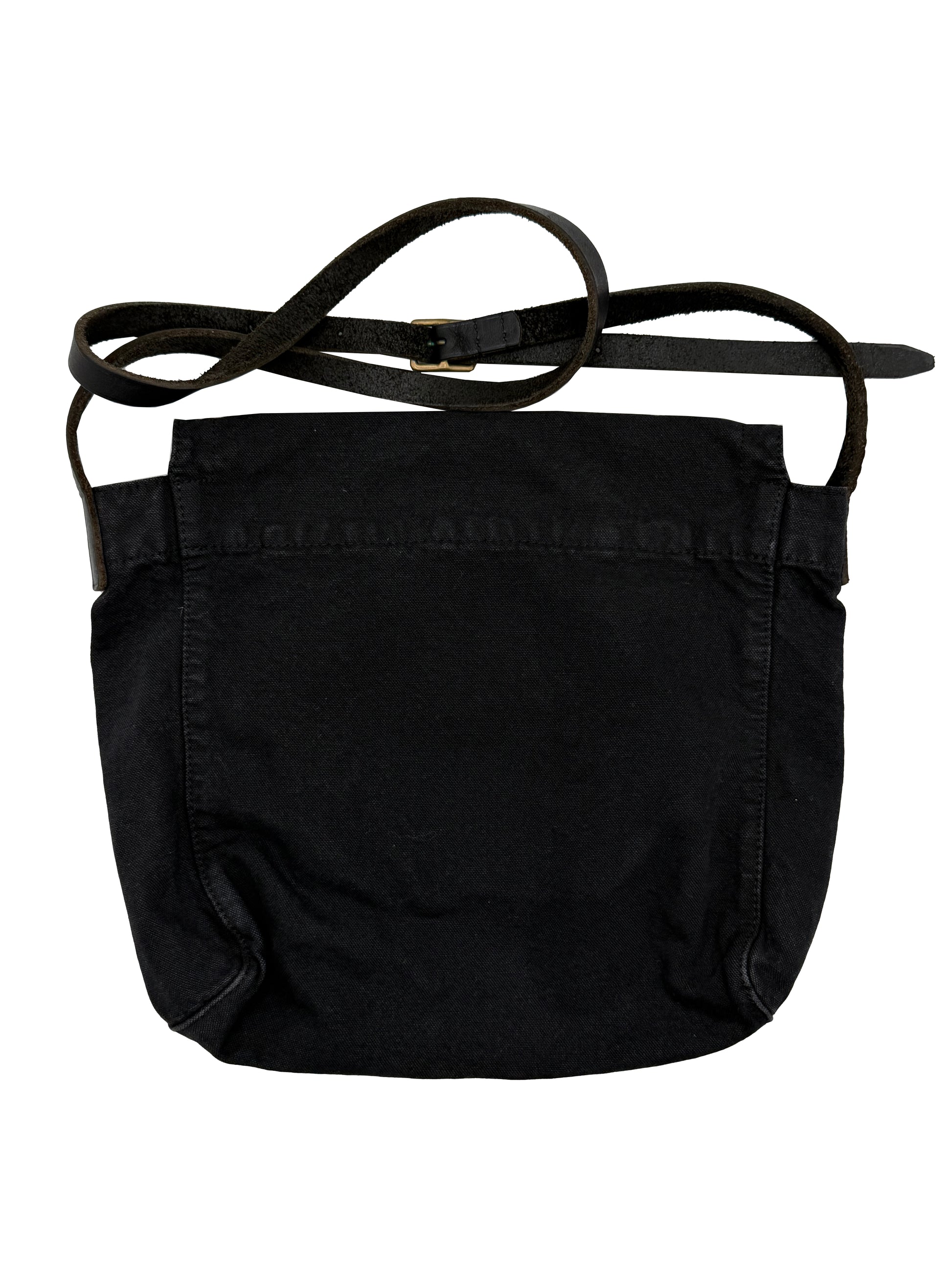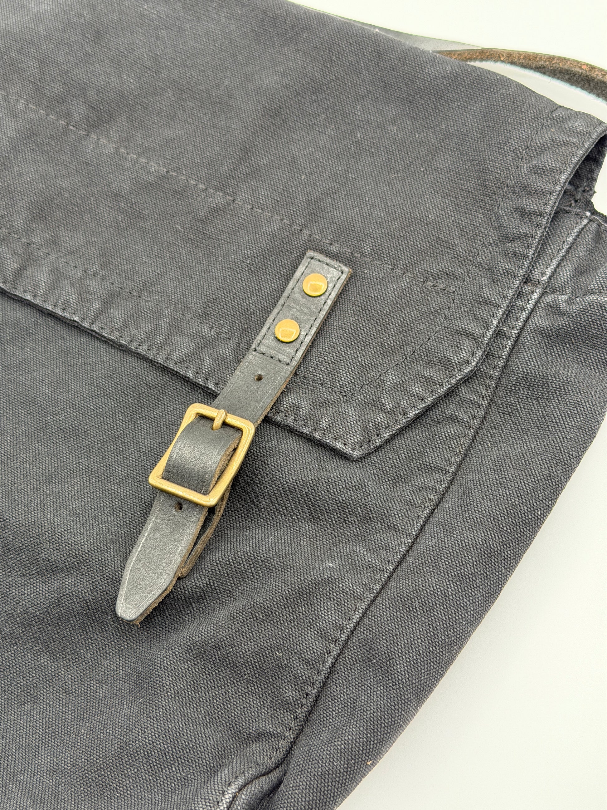 The bag was constructed using a high-density duck fabric body made from cotton/linen blend fibers that have been dry-processed for a crisp, soft hand. Once constructed, the fabric was damaged processed for a worn-in look. The strap and buckle are made from a waxed Horween vegetable-tanned cowhide.