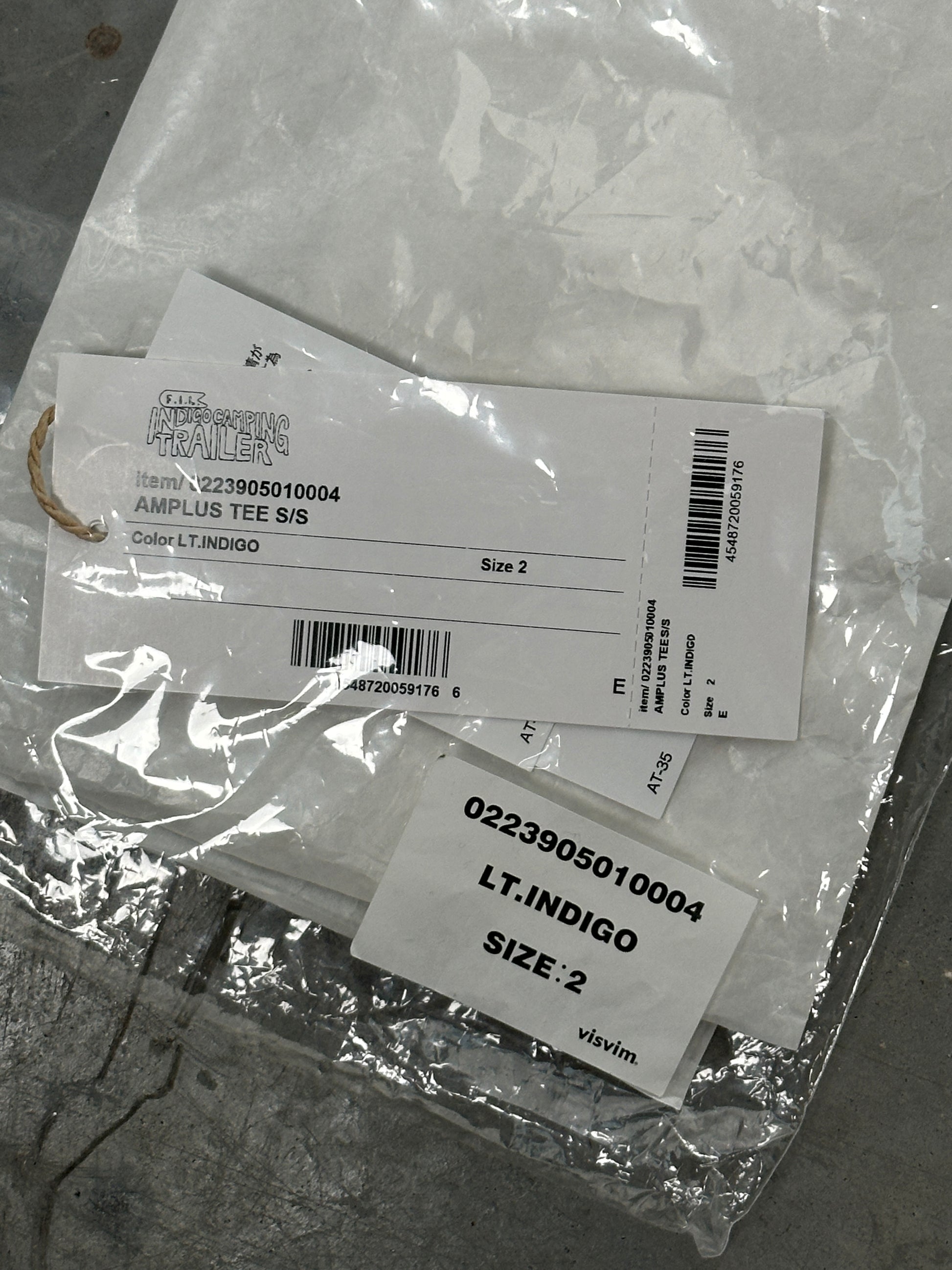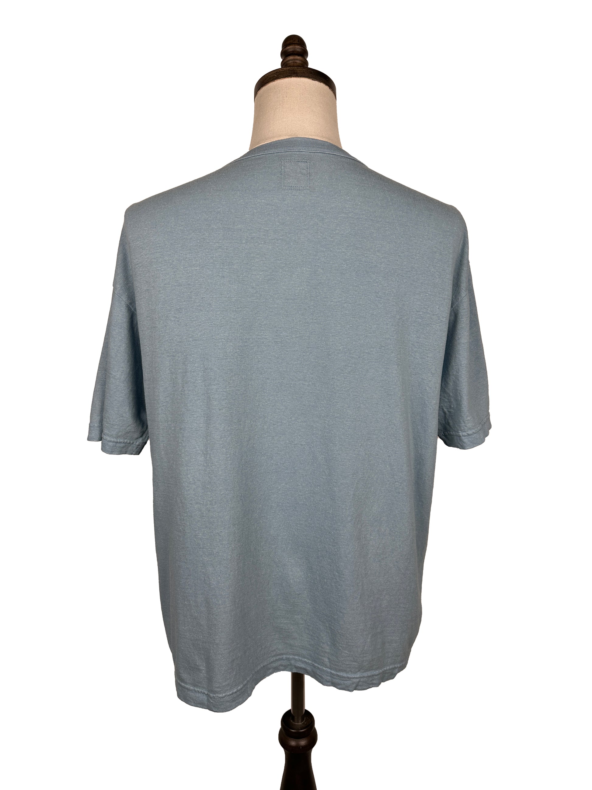 From Visvim's Spring/Summer 2023 Indigo Camping Trailer Collection comes the Amplus Tee in Light Indigo. The Amplus silhouette has a wide body, with a cropped length and drop shoulder.