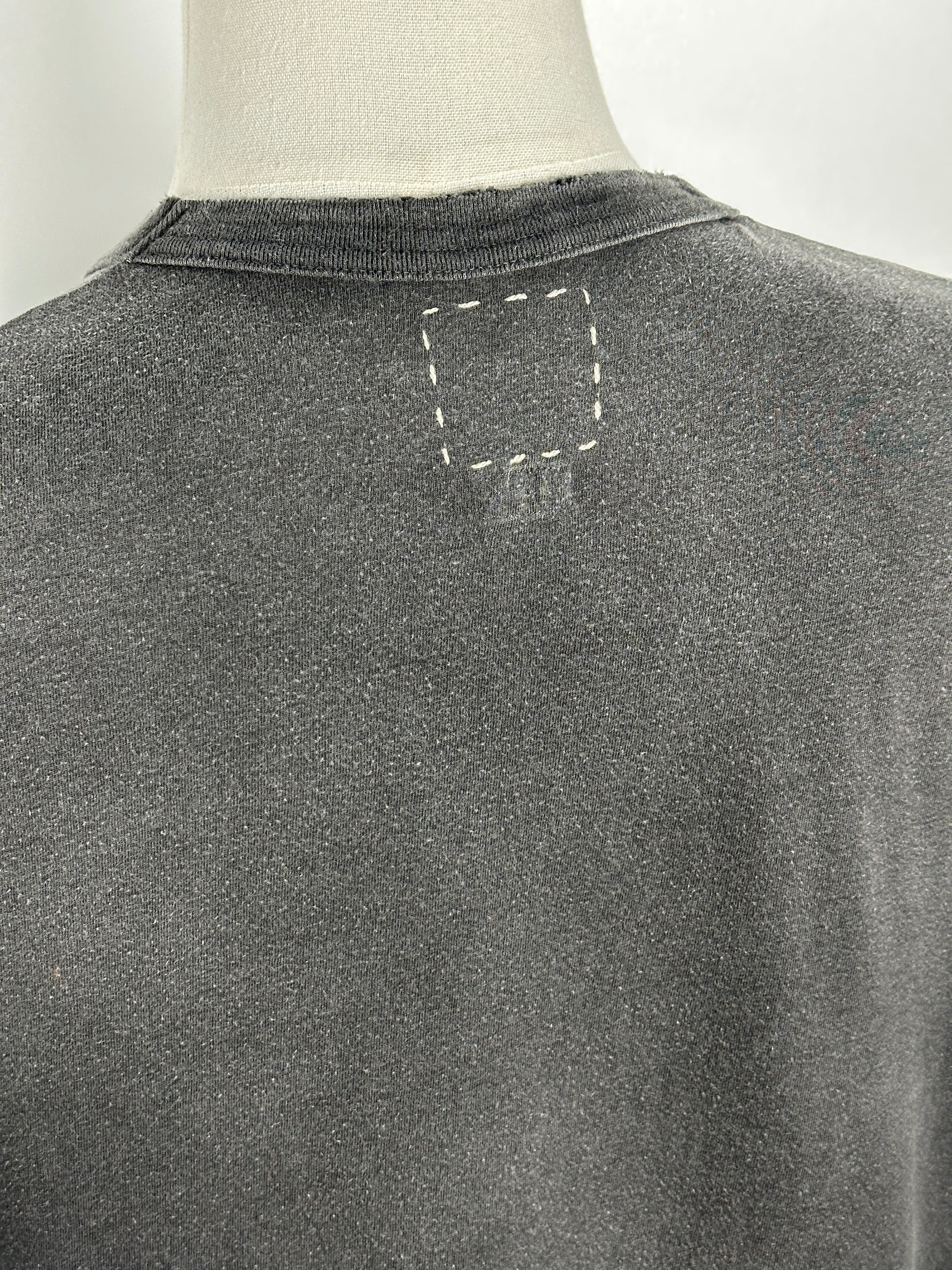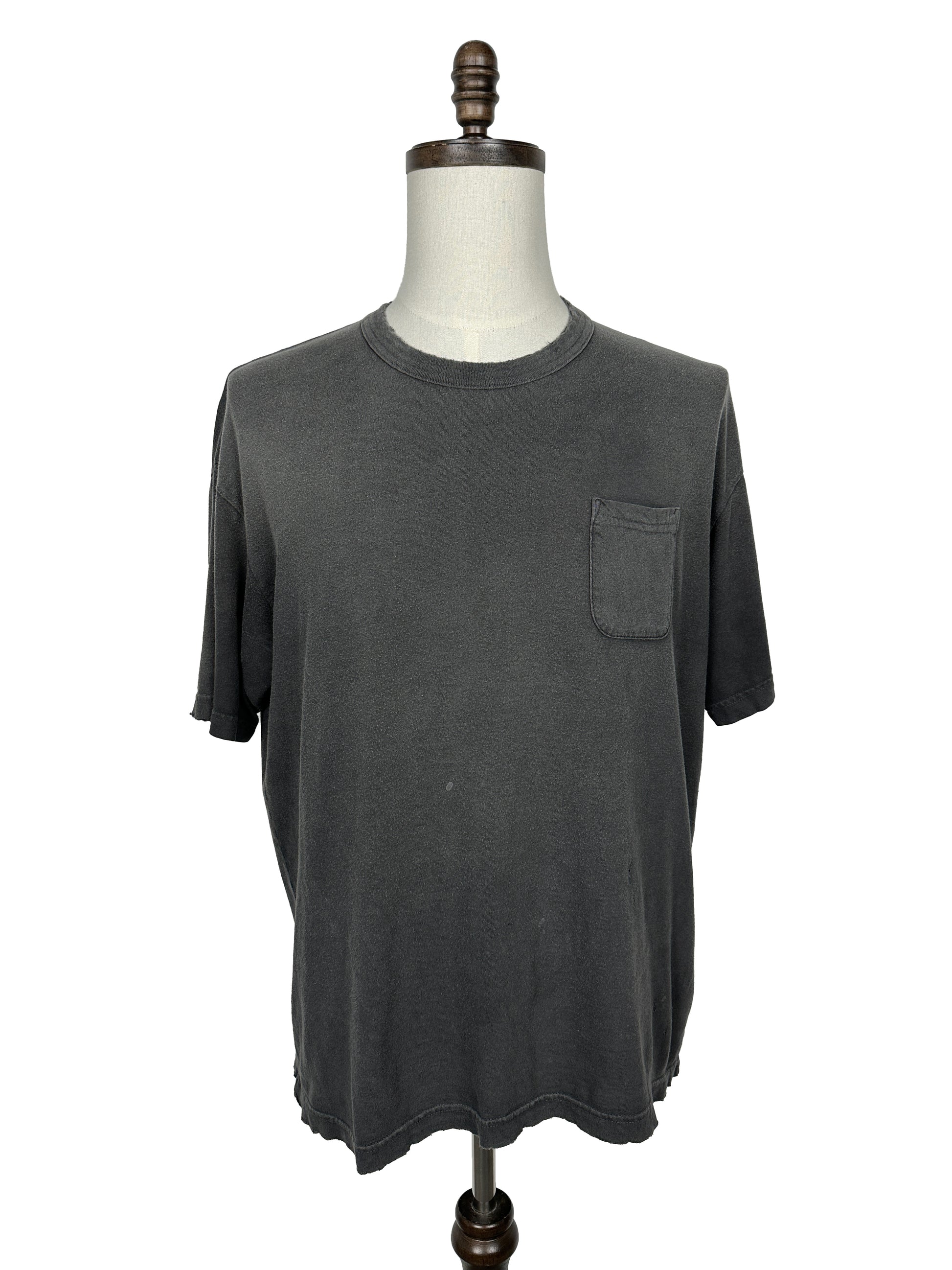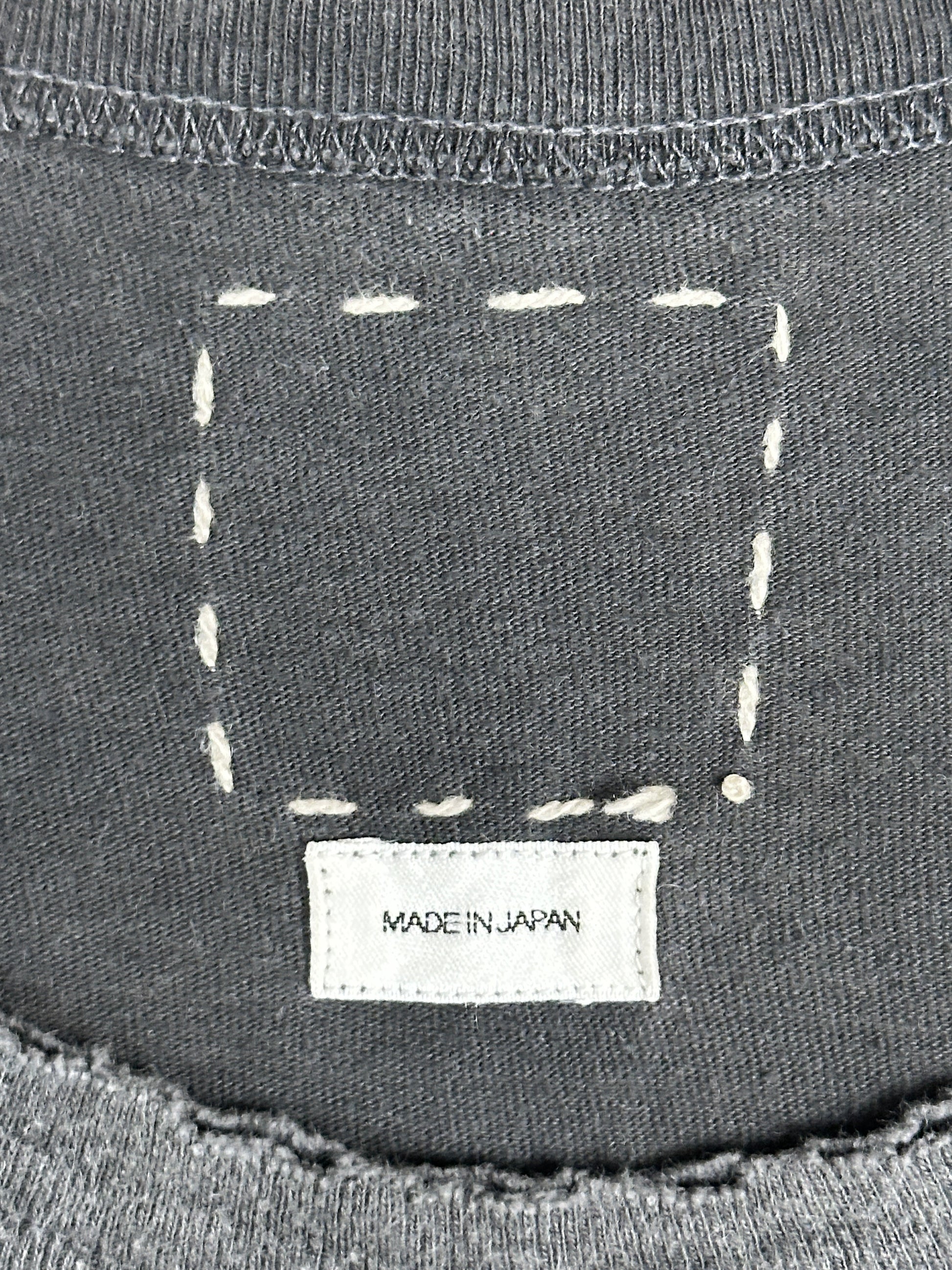 The tee was constructed using a textured jersey fabric made from dry processed cotton fibers. Once constructed, the tee was garment dyed and crash processed for a weathered appearance.