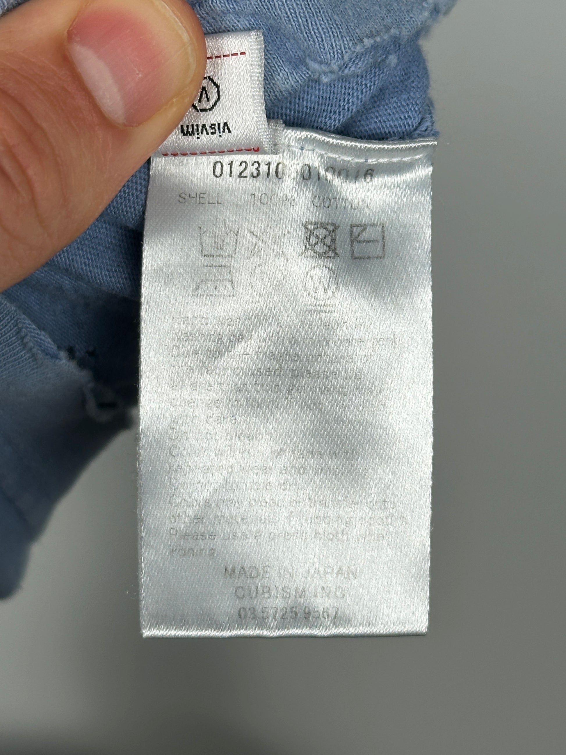 Additional details include one chest pocket, and a hand-stitched neck label.