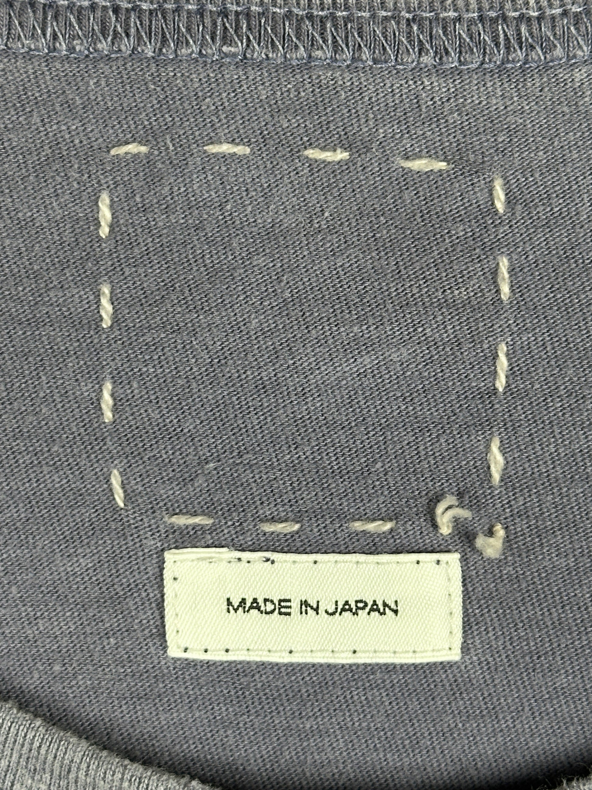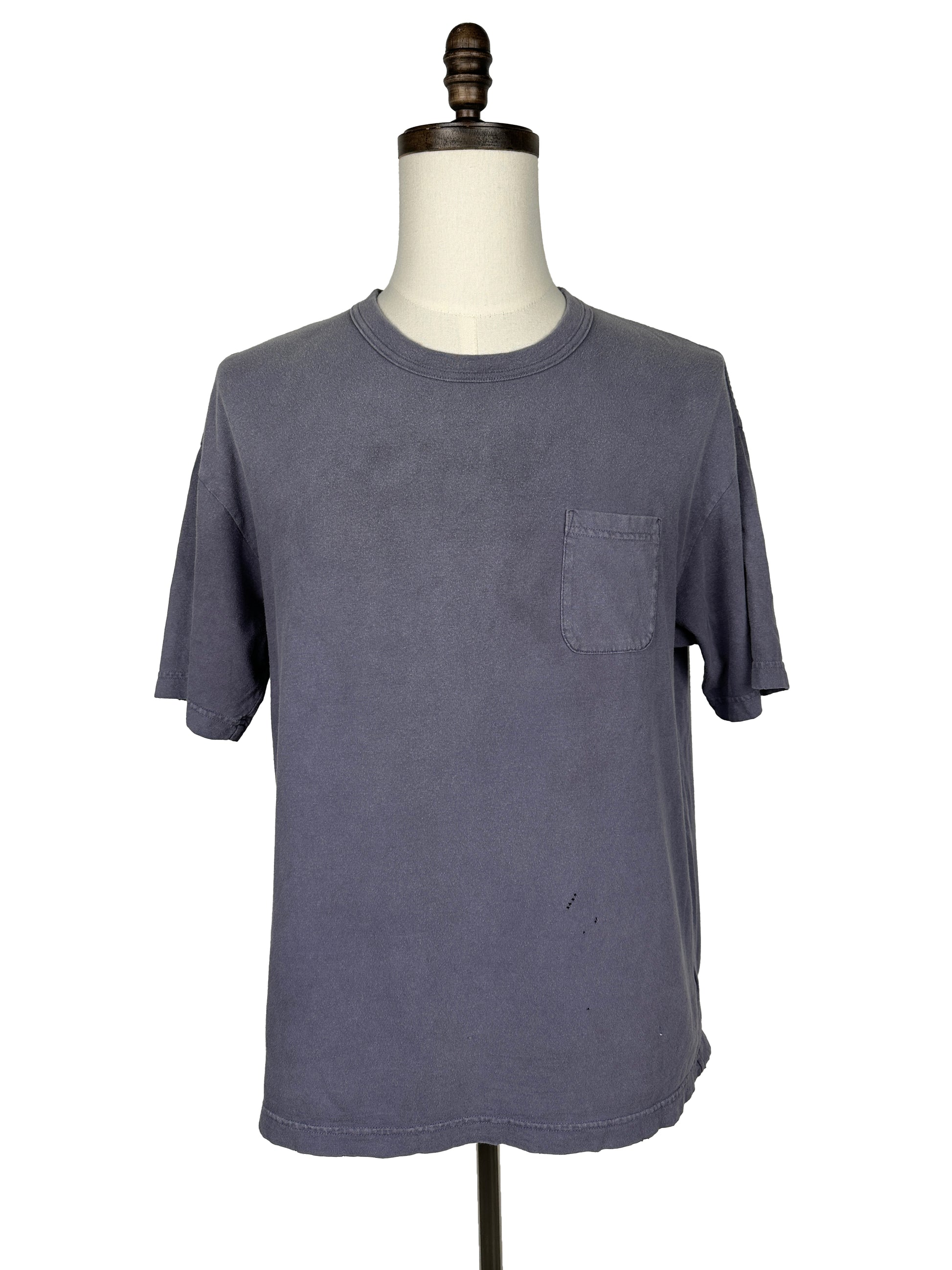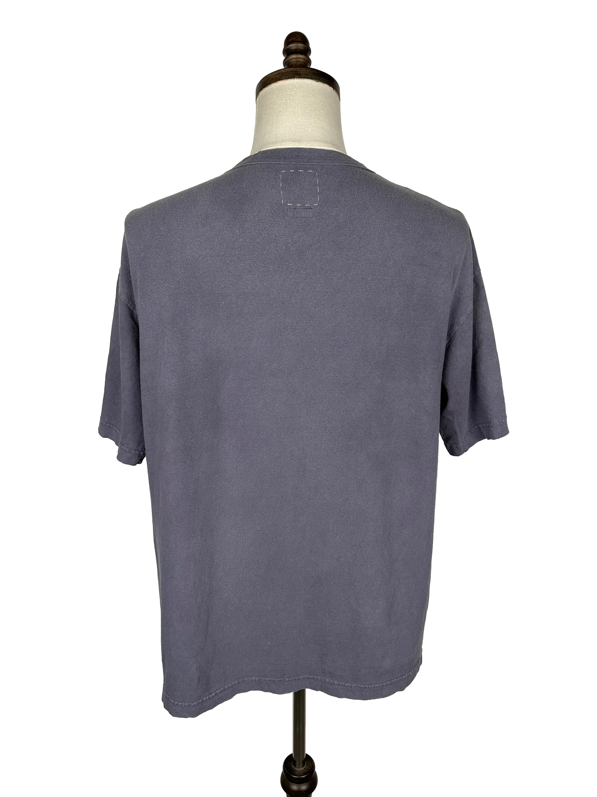 The tee was constructed using a textured jersey fabric made from dry processed cotton fibers. Once constructed, the tee was garment dyed and crash processed for a weathered appearance.