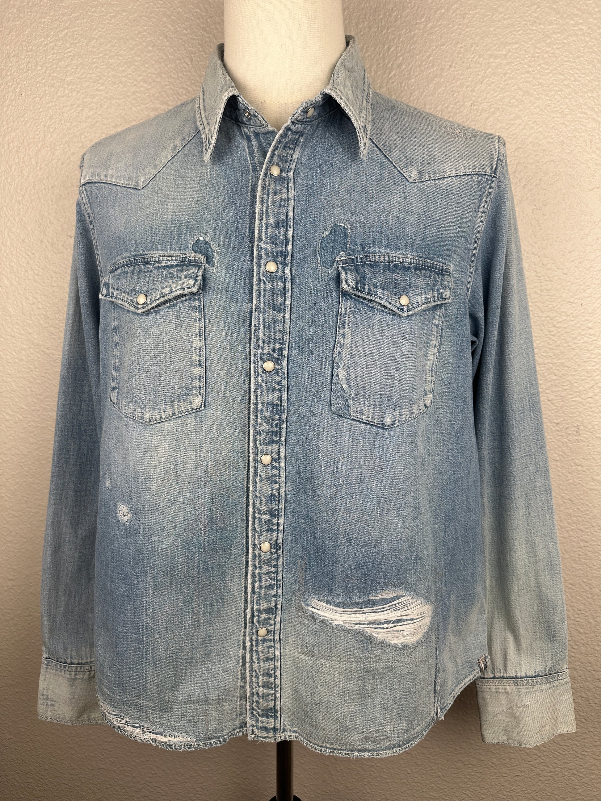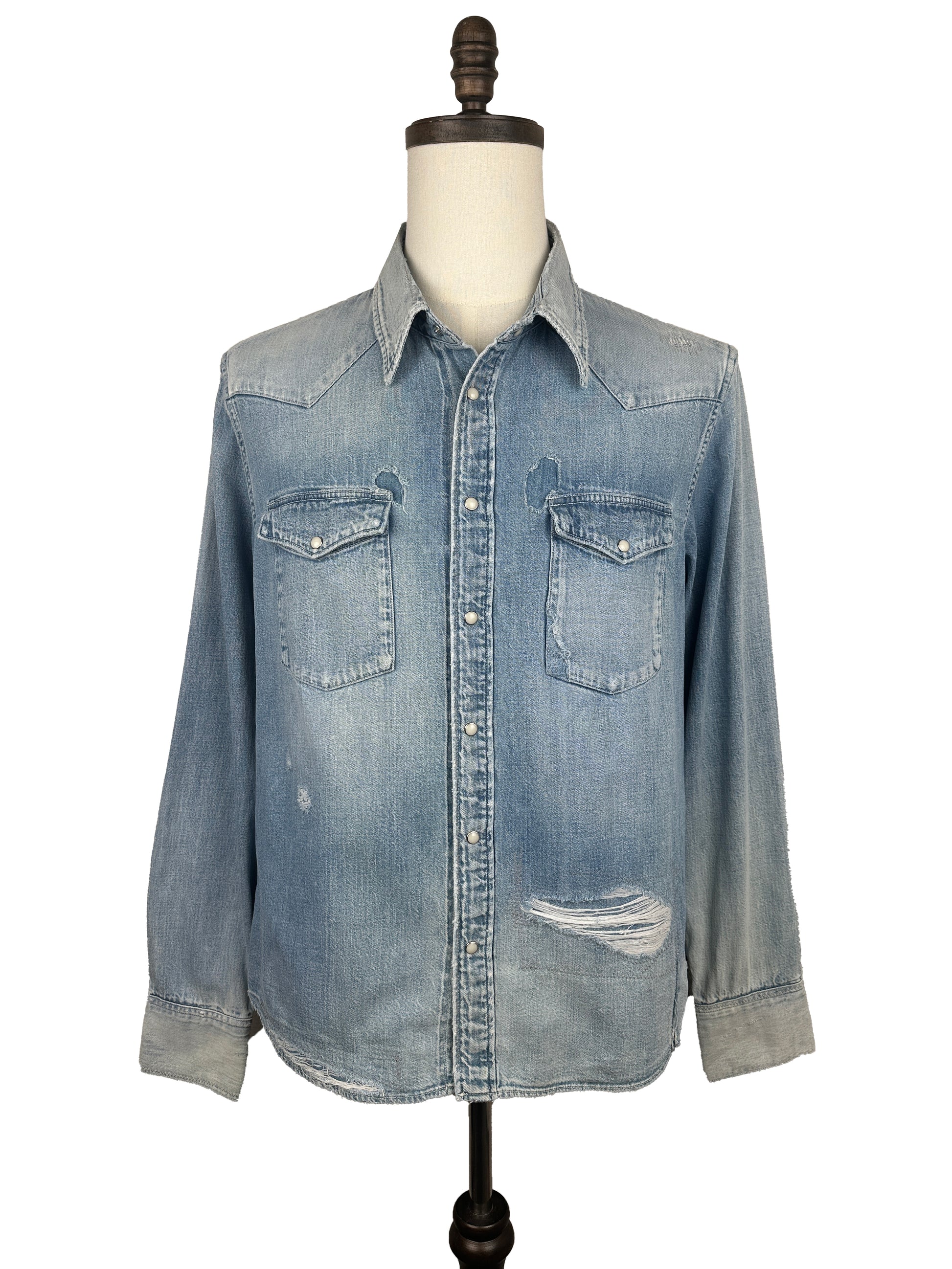 The shirt is constructed using Visvim's custom social sculpture 8oz selvedge denim. One constructed, the shirt was crash processed for a well-worn appearance.
