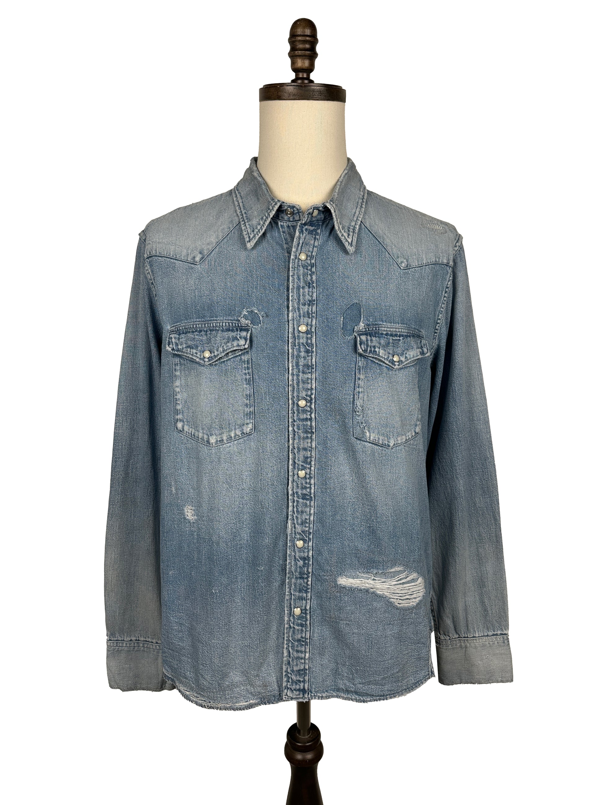 From Visvim's Spring/Summer 2024 Collection comes the Social Sculpture Shirt in Light Indigo. The Social Sculpture shirt is a western button up with a relaxed fit featuring a slight drop shoulder, button fastened cuffs, two button chest pockets, and a curved hem.