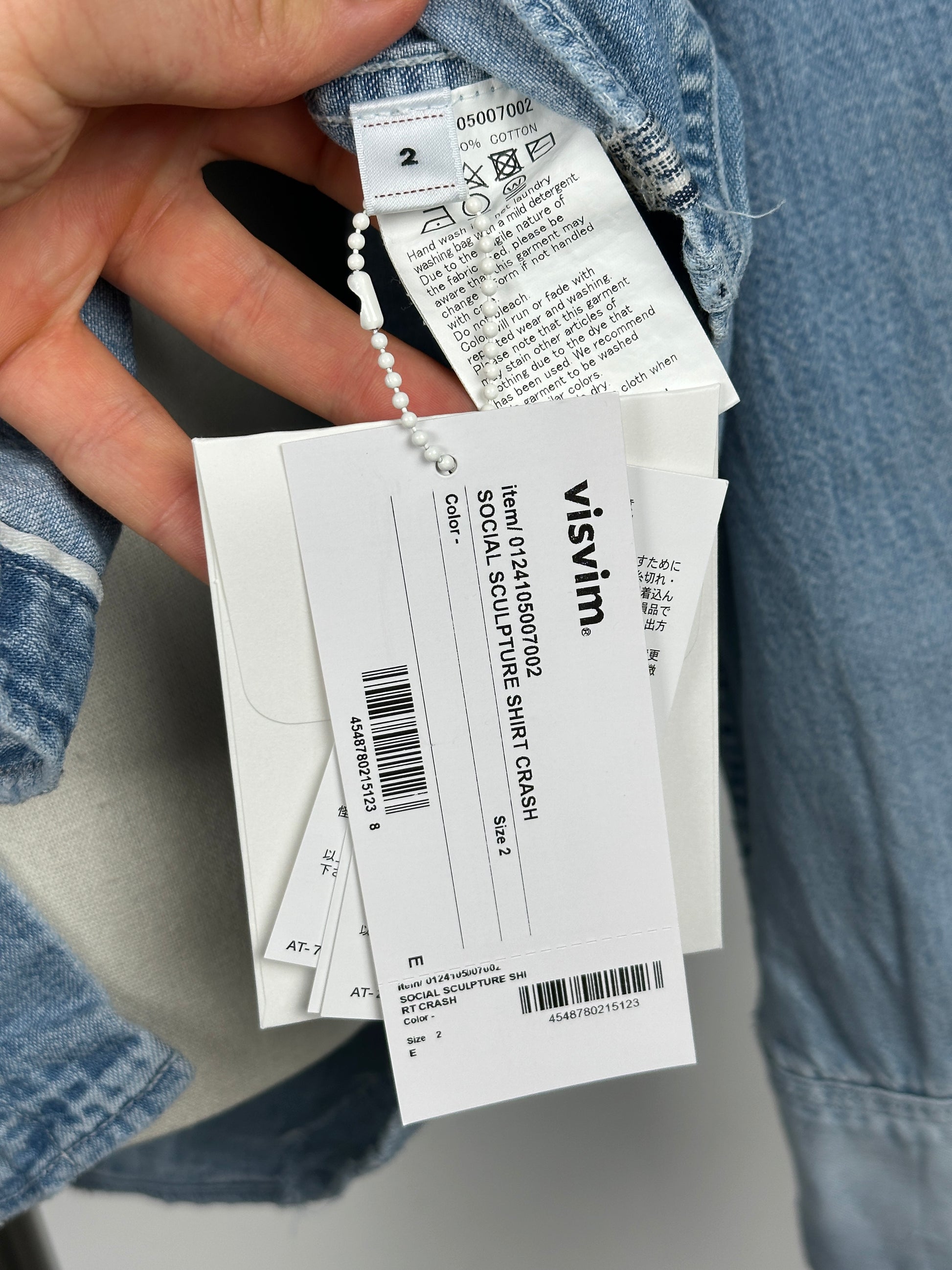 The shirt is constructed using Visvim's custom social sculpture 8oz selvedge denim. One constructed, the shirt was crash processed for a well-worn appearance.