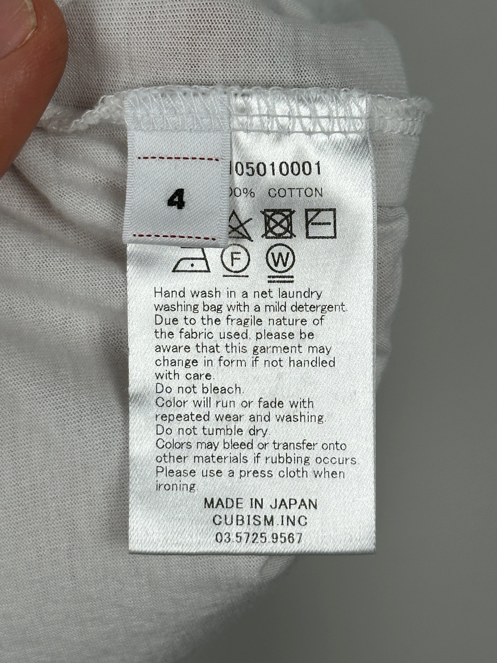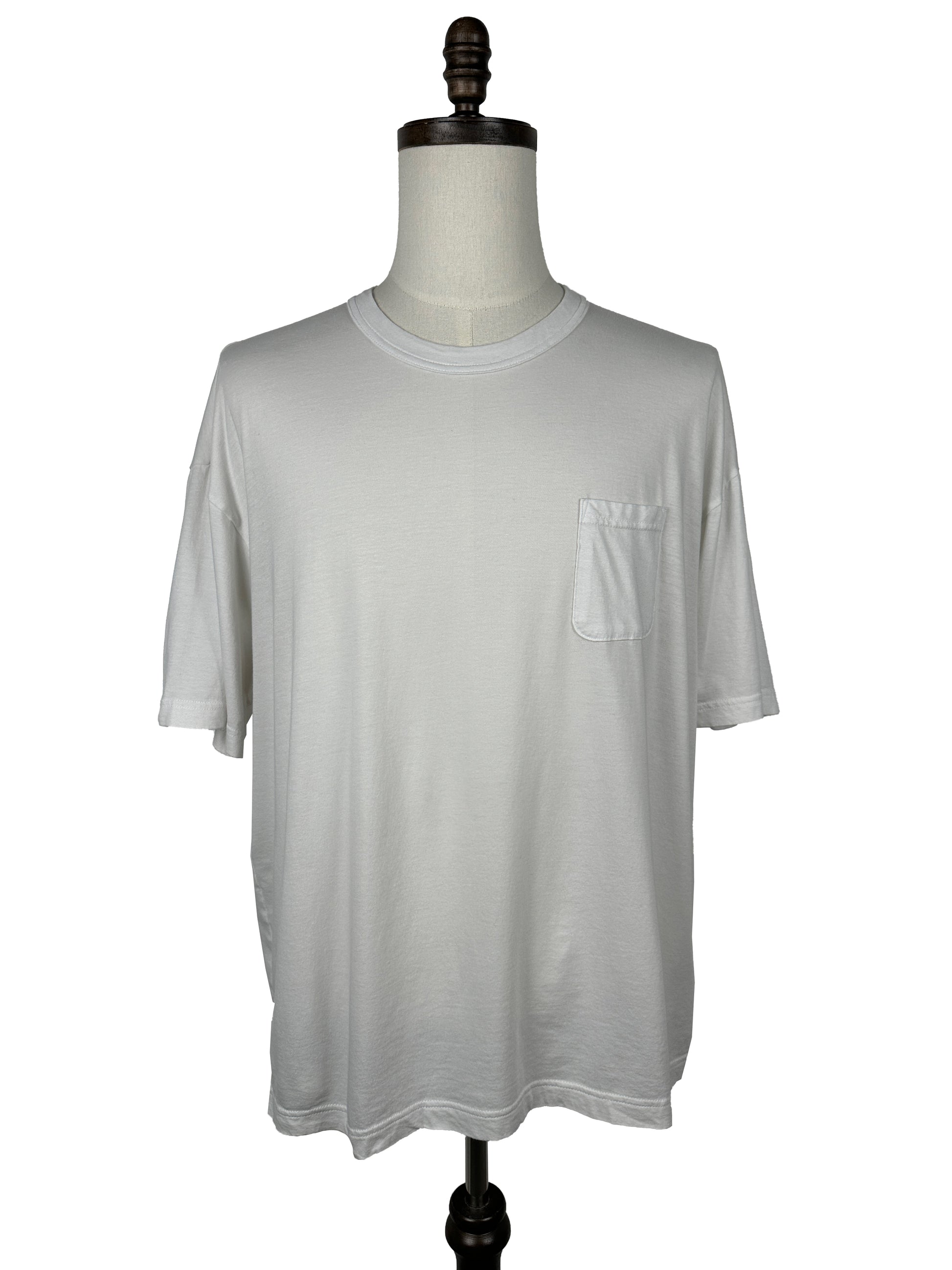 The tee is constructed using a West Indian Sea Island cotton fabric. Sea Island cotton is a soft premium cotton with ultra-long fibers that is often described as having a "silk-like luster" and a "hand feel as soft as cashmere" and is one of the highest-grade cotton strains in the world. It can retain its natural disposition even when worn or washed repeatedly in which the longer it is used, the more you can feel its quality. Once constructed, the shirt was one wash processed for a worn-in look.