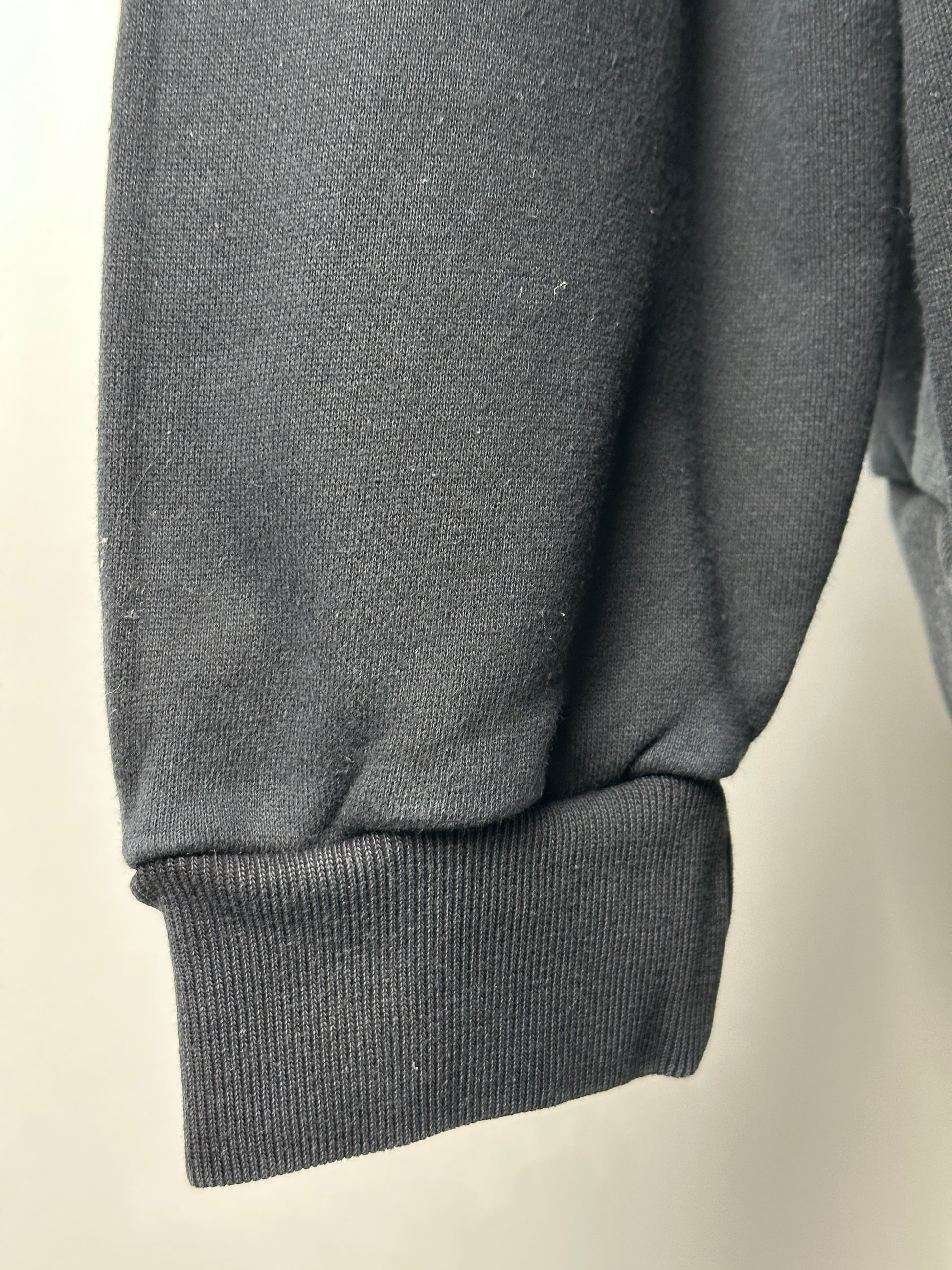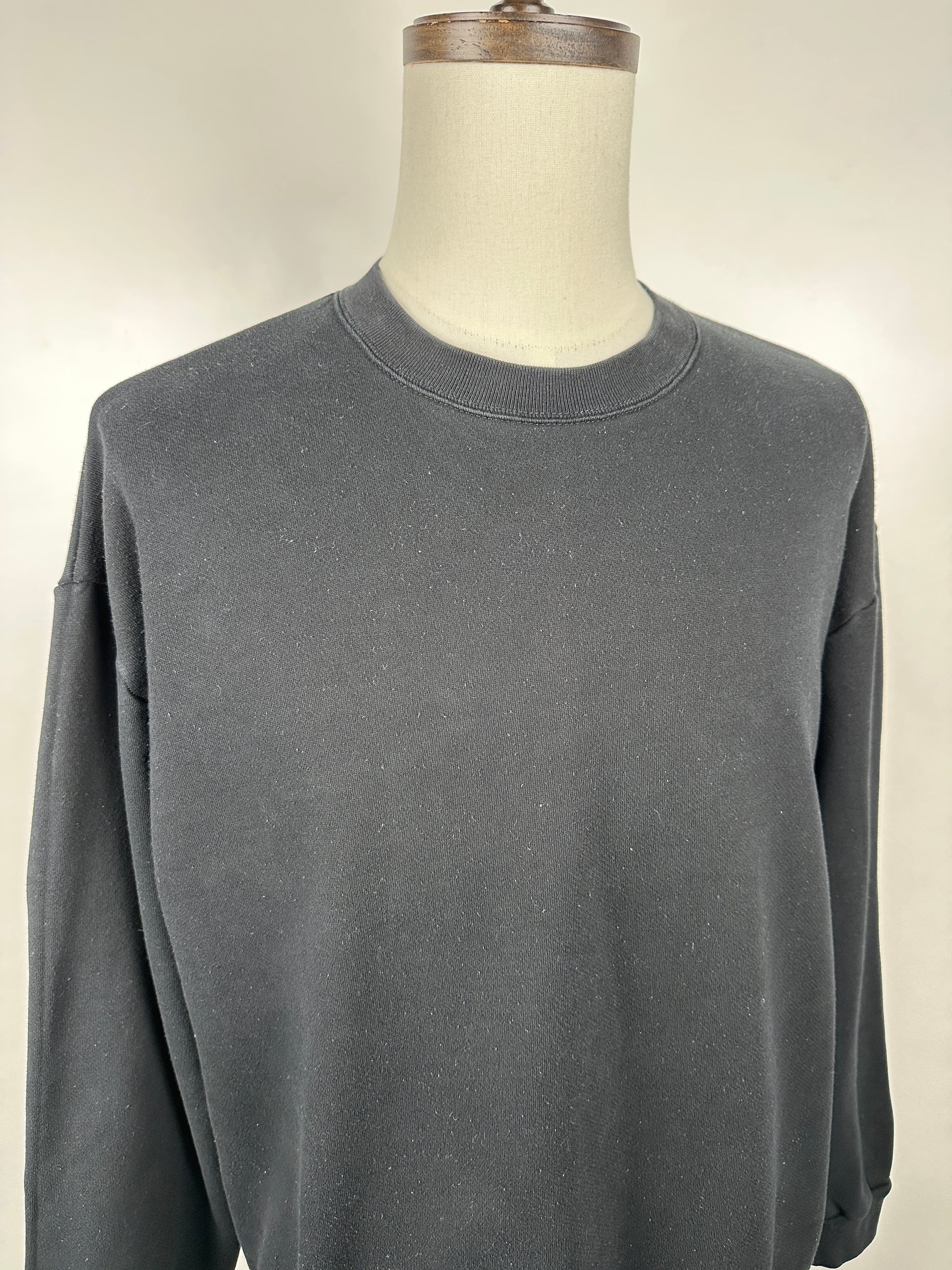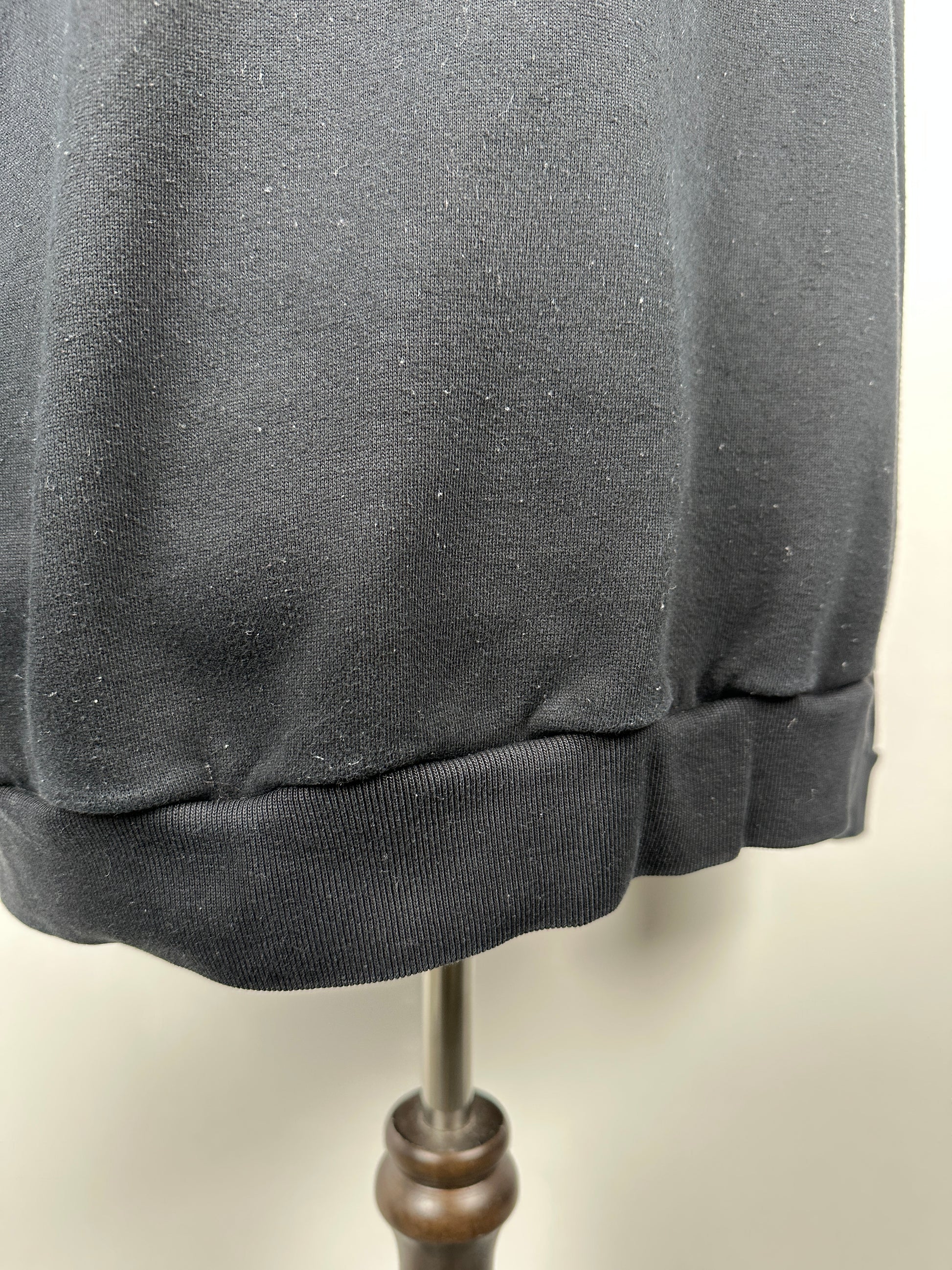 The sweatshirt is constructed using a French terry jersey knit fabric. Once constructed, the sweatshirt was wash processed for a vintage-like finish featuring a dry surface texture.