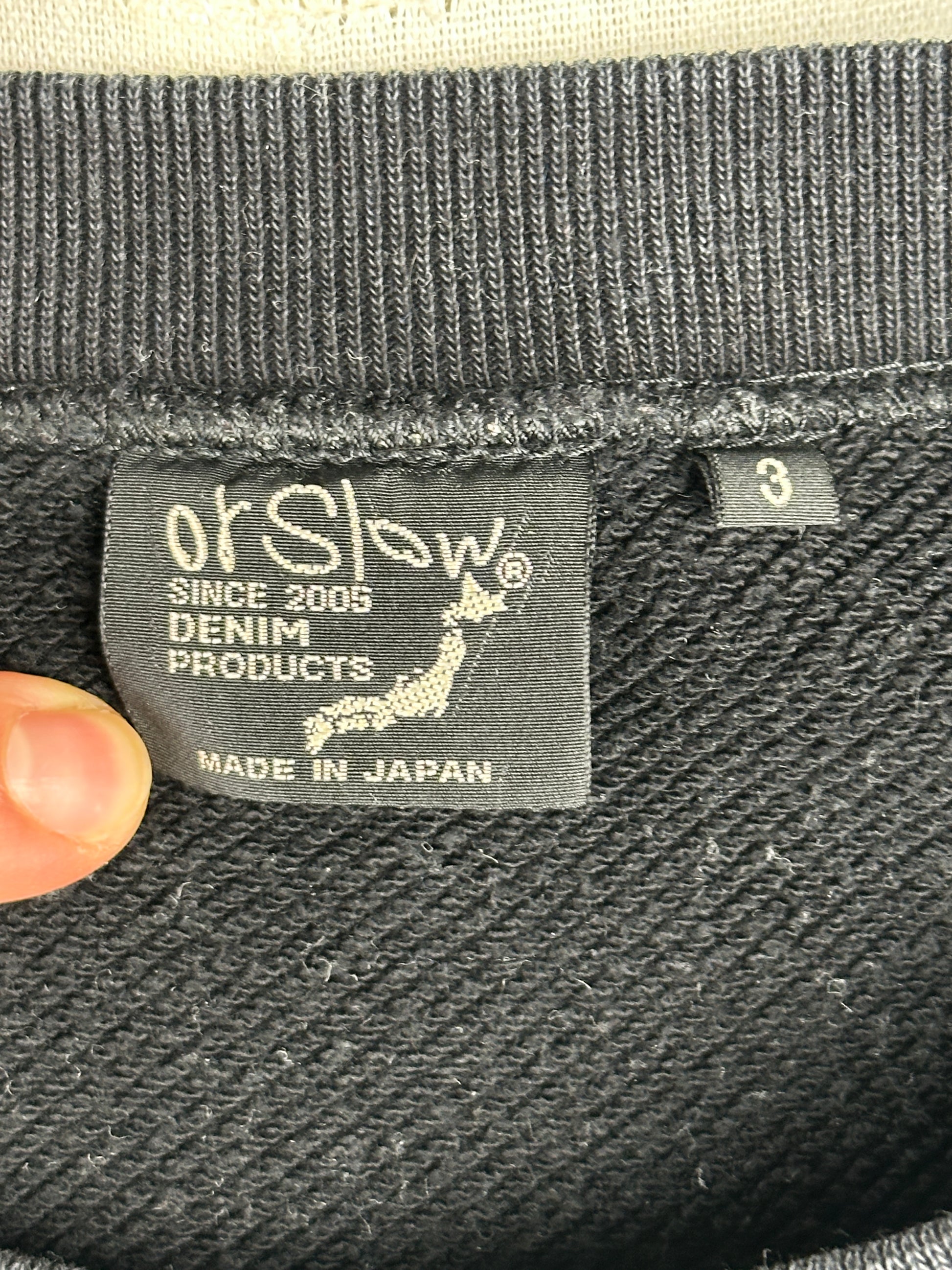 From orSlow comes the Jersey Knit Sweatshirt in Black. The sweatshirt is cut in a boxy silhouette featuring drop shoulders and a ribbed collar and hem.